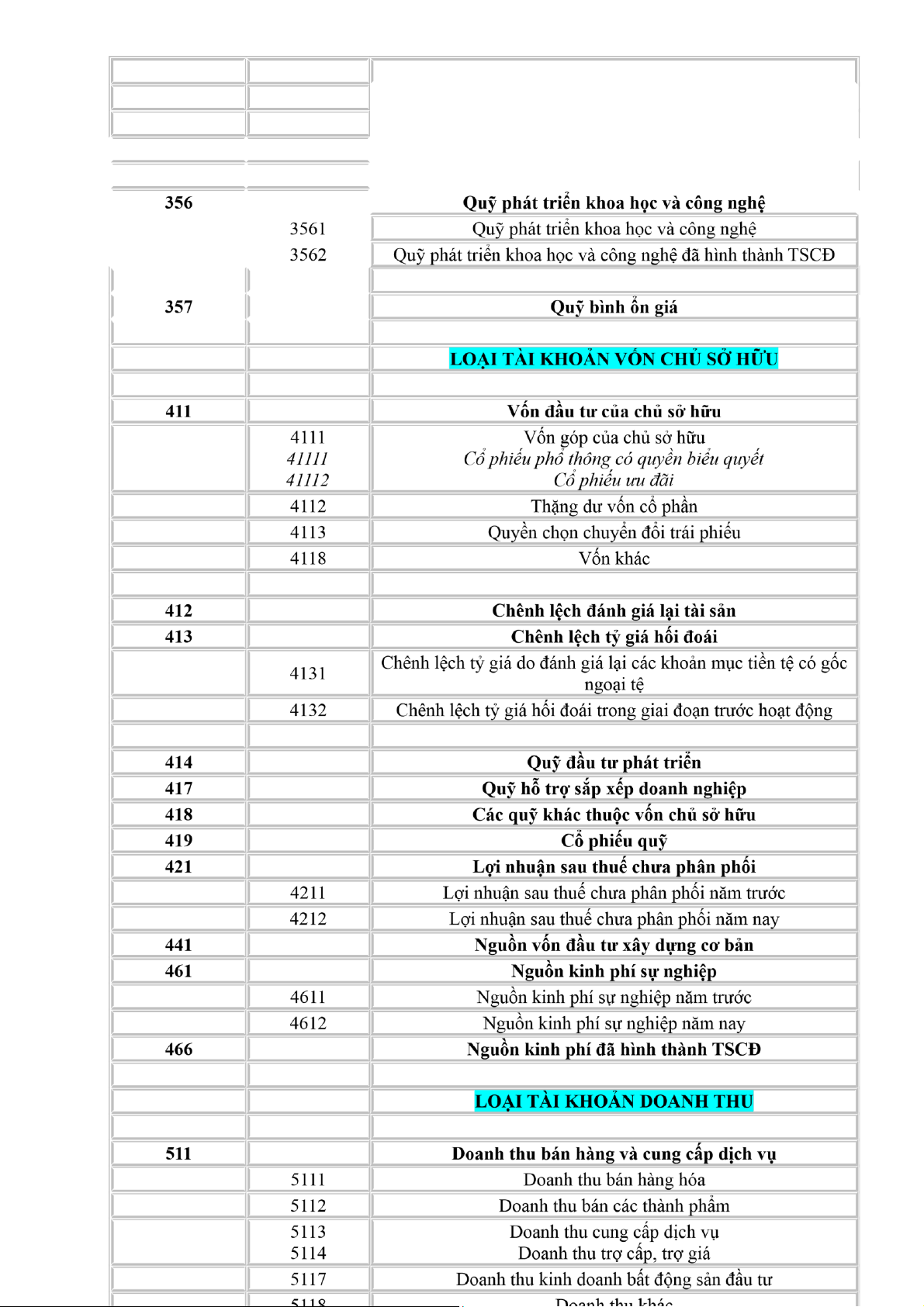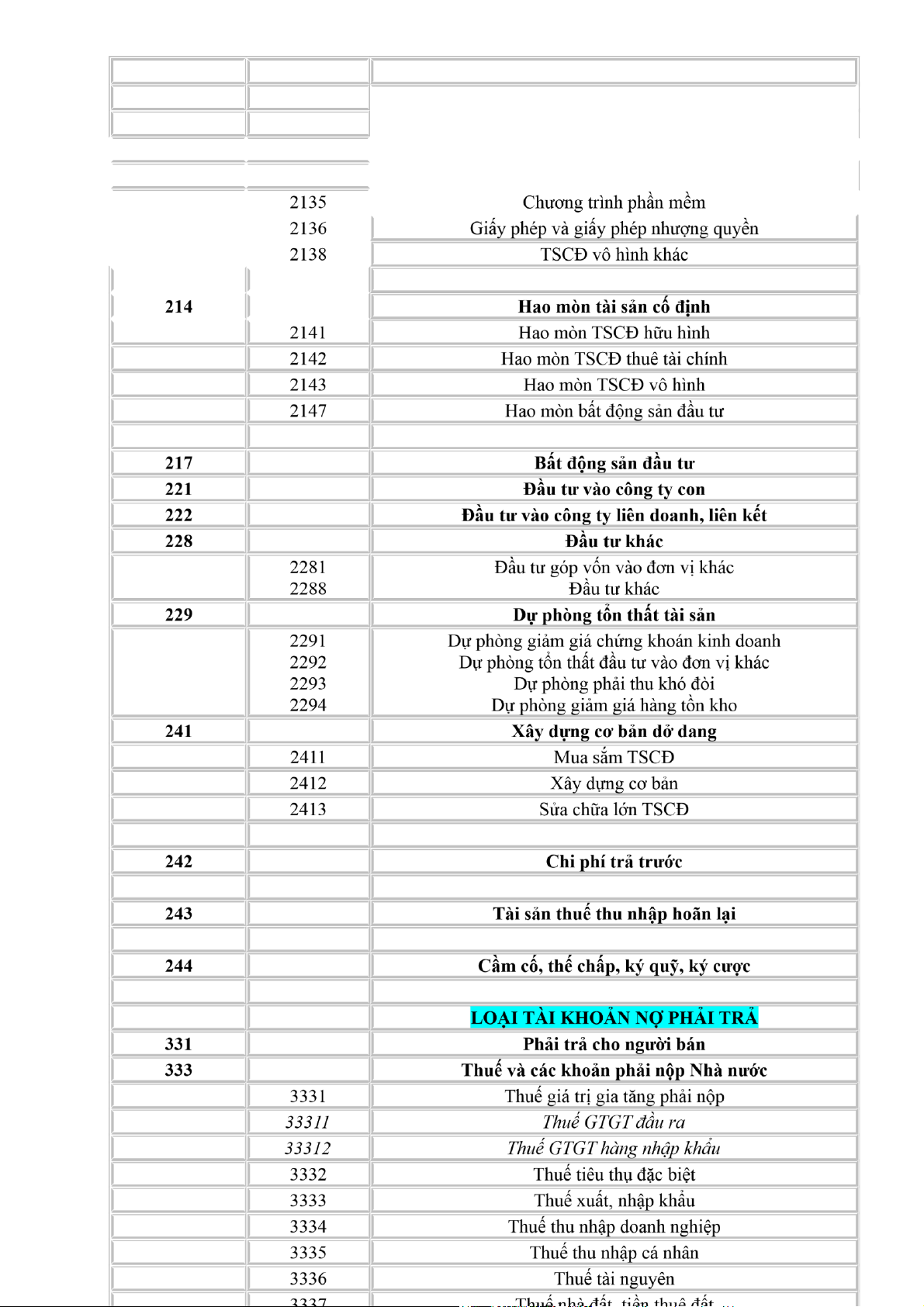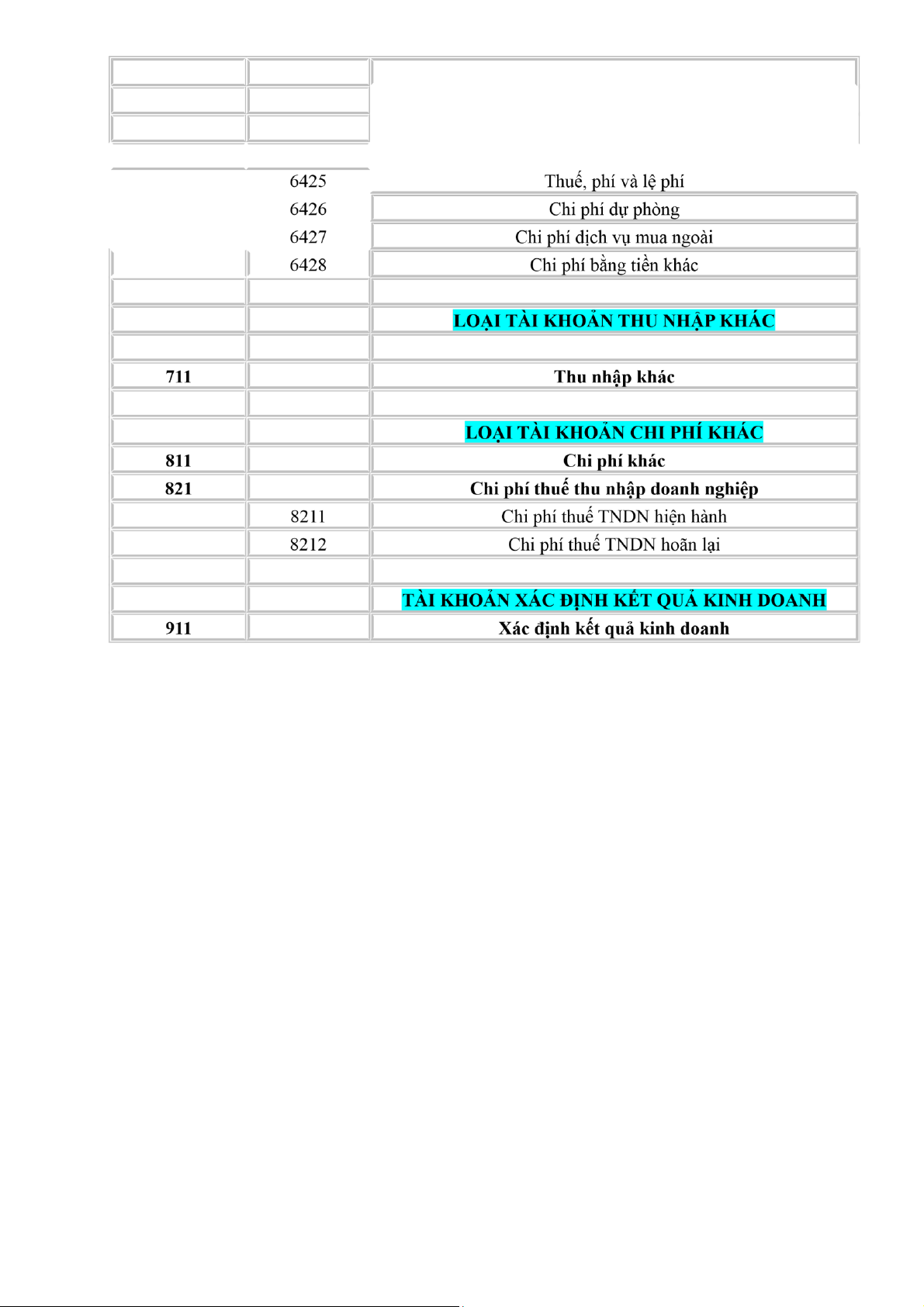 DANH MỤC HỆ THỐNG TÀI KHOẢN KẾ TOÁN DOANH NGHIỆP