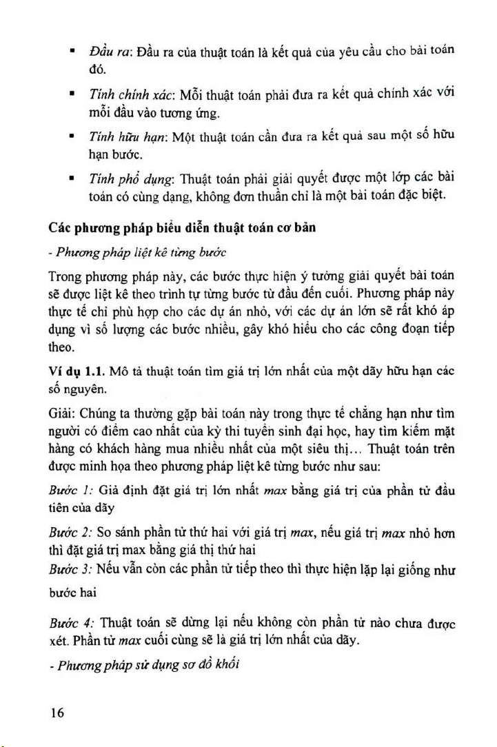 Ví dụ 1.1. Mô tả thuật toán tìm giá trị lớn nhất của một dãy hữu hạn các số nguyên.