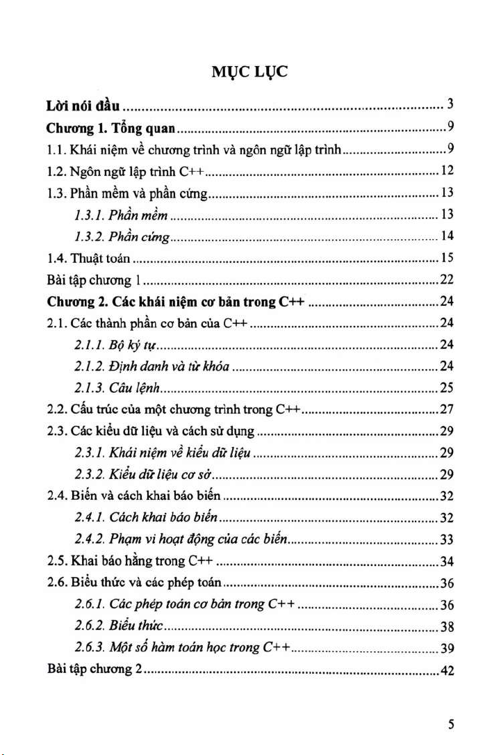 Chương 2 trình bày các khái niệm cơ bản cùa ngôn ngữ C++, cầu trúc