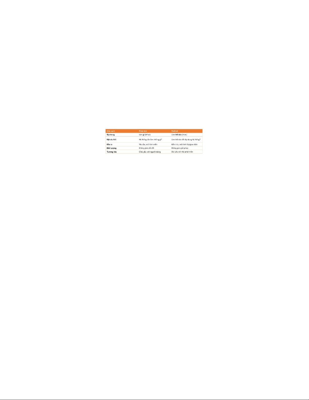 • Phân tích: trả lời cho câu hỏi WHAT, tập trung vào các yêu cầu (chức năng và