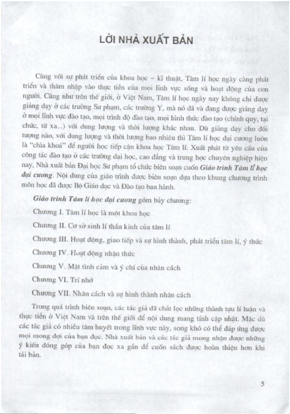 Giáo trình môn Tâm lý học đại cương | Trường Đại học Luật Hà Nội