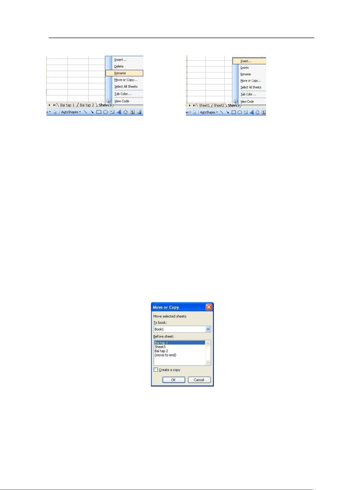 Hình 1. 22 Chèn thêm worksheet Hình 1. 23 Đổi tên worksheet