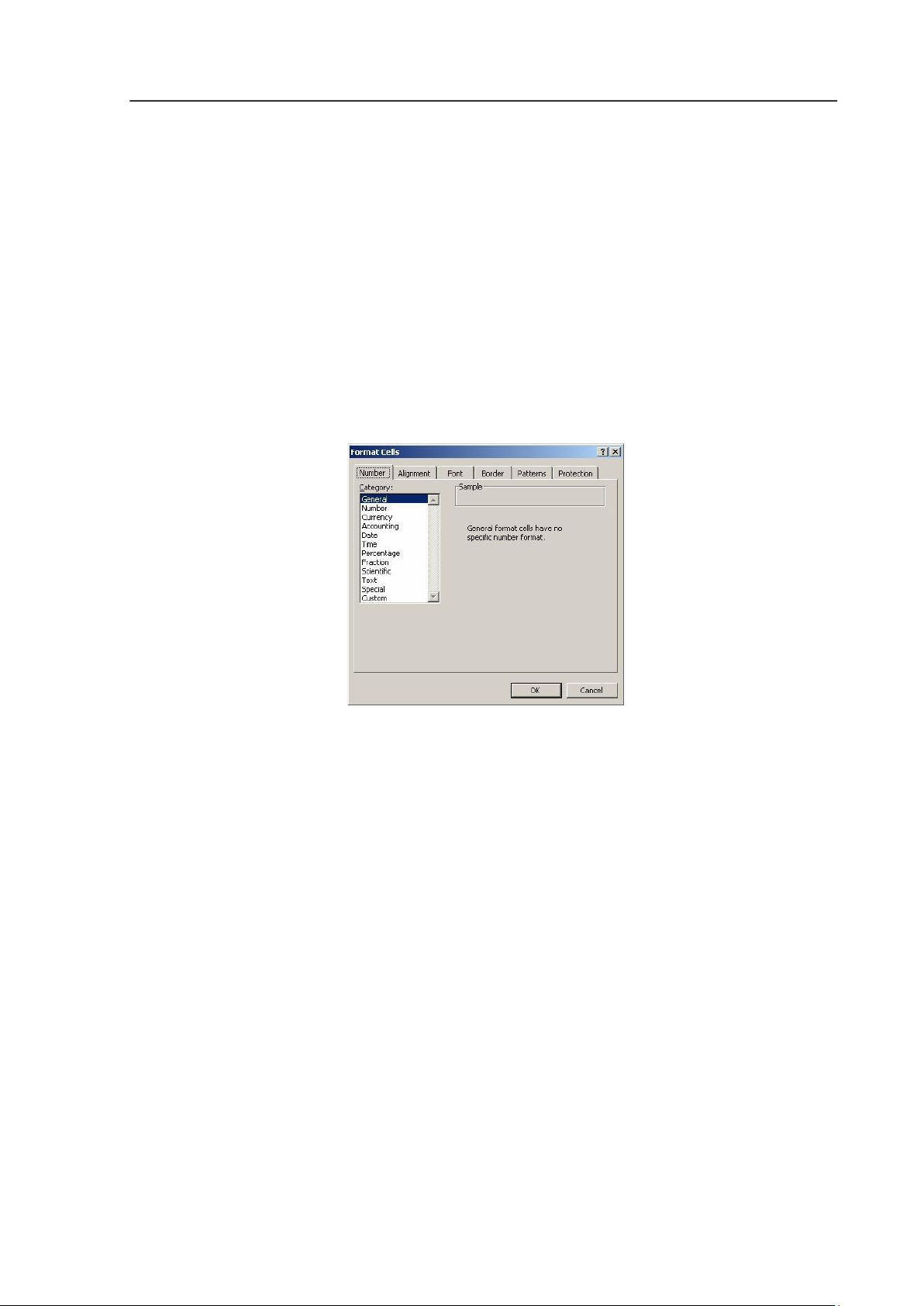 liệu, lựa chọn (bôi đen) vùng dữ liệu, chọn menu format | cells | numbers. Cửa sổ như hình 1.24