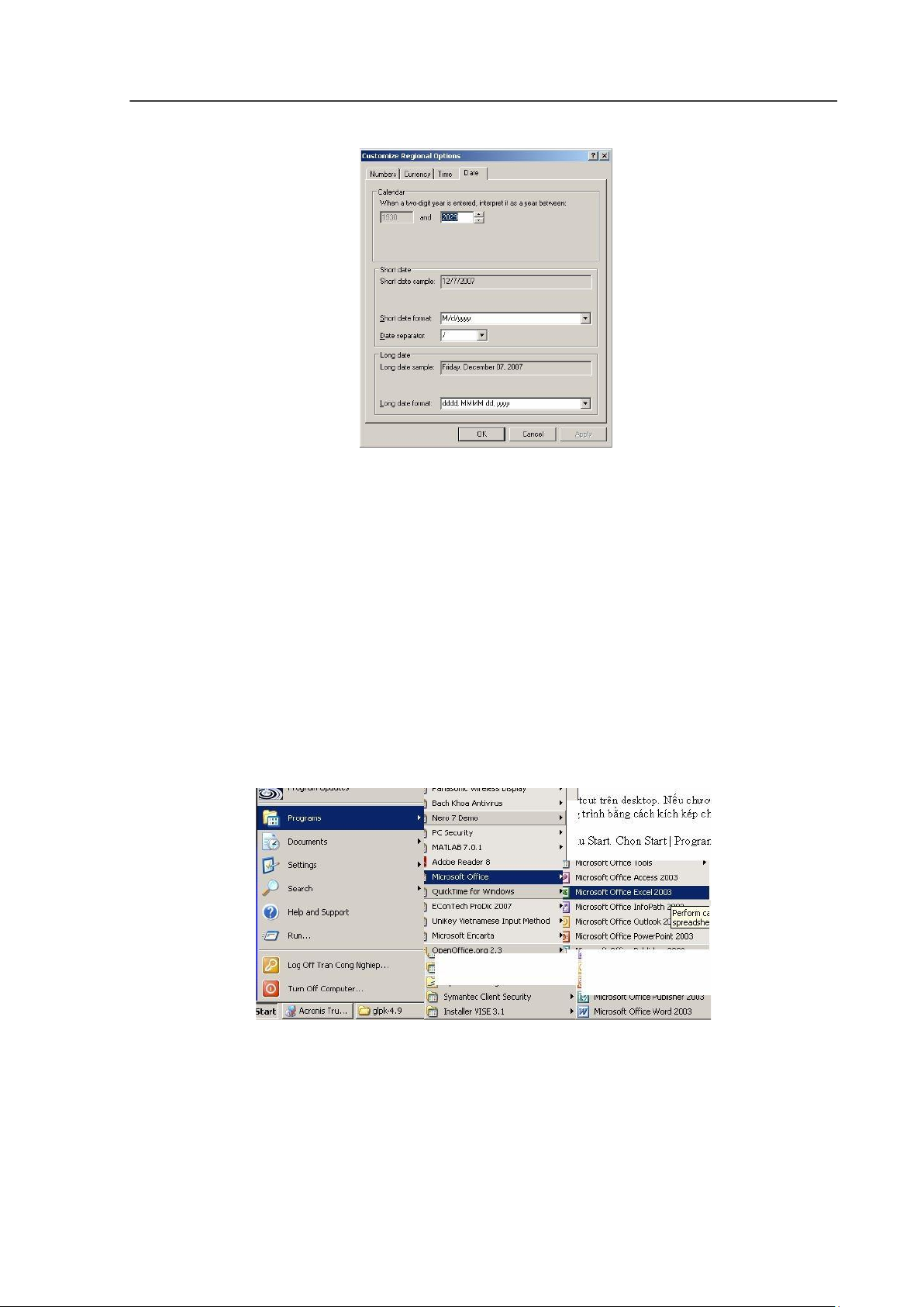 Cách 2: Từ menu Start | Programs | Microsft office | Microsoft Office Excel 2003 như trong hình 1.14.