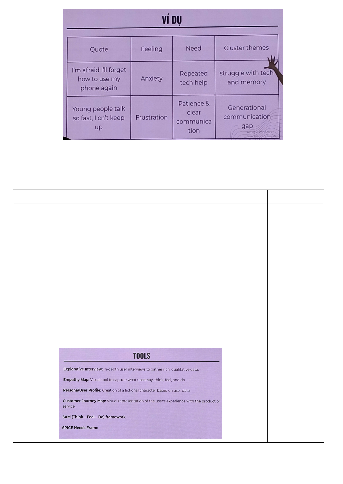 - Hỏi câu hỏi đúng: đảm bảo chất lượng thông tin thu nhận được để đưa ra insight phù hợp sử dụng trong tư duy thiết kế