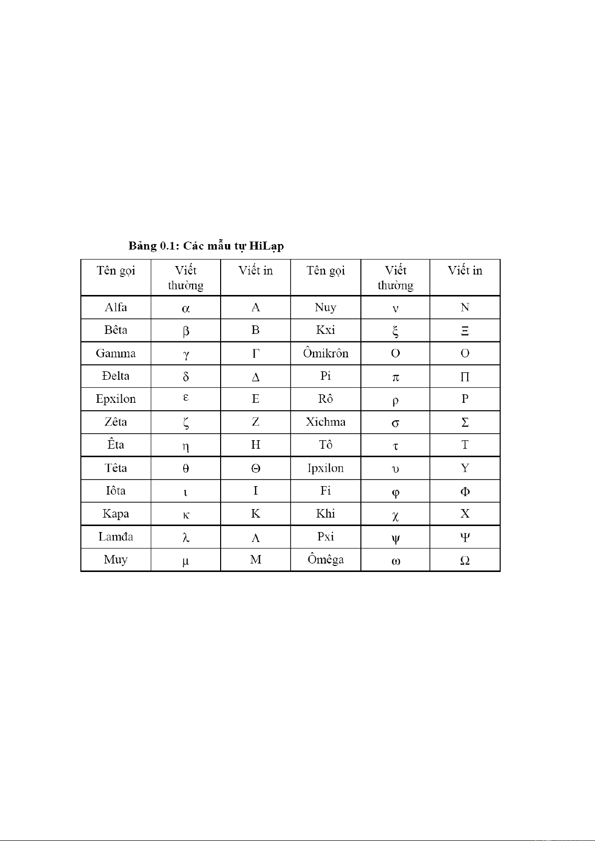 Mỗi đại lượng vật lý được kí hiệu bởi một hay nhiều kí tự La Tinh hoặc kí tự Hi Lạp ( xem bảng 0.1).