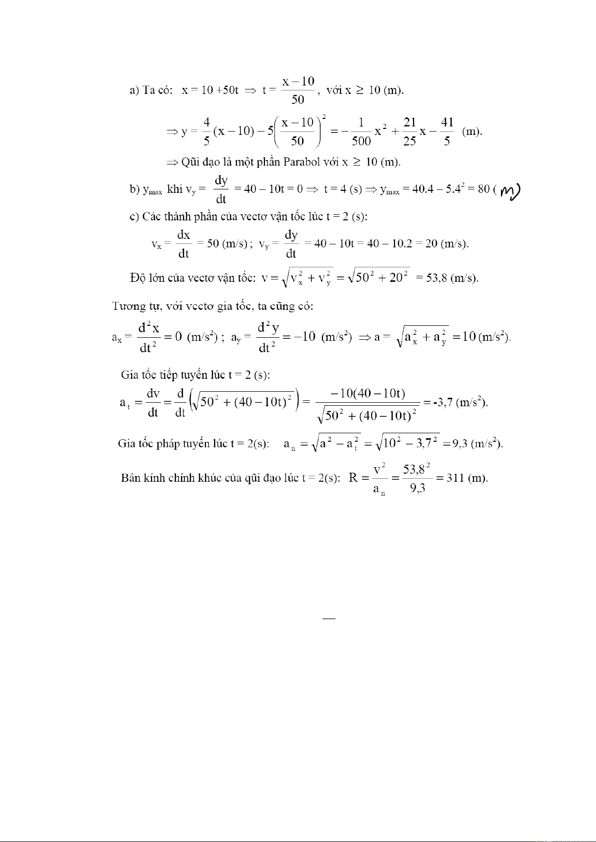 e, Bán kính cong của quỹ đạo tại điểm bắt đầu ném và điểm chạm đất. Bỏ qua sức cản của không khí Giải: