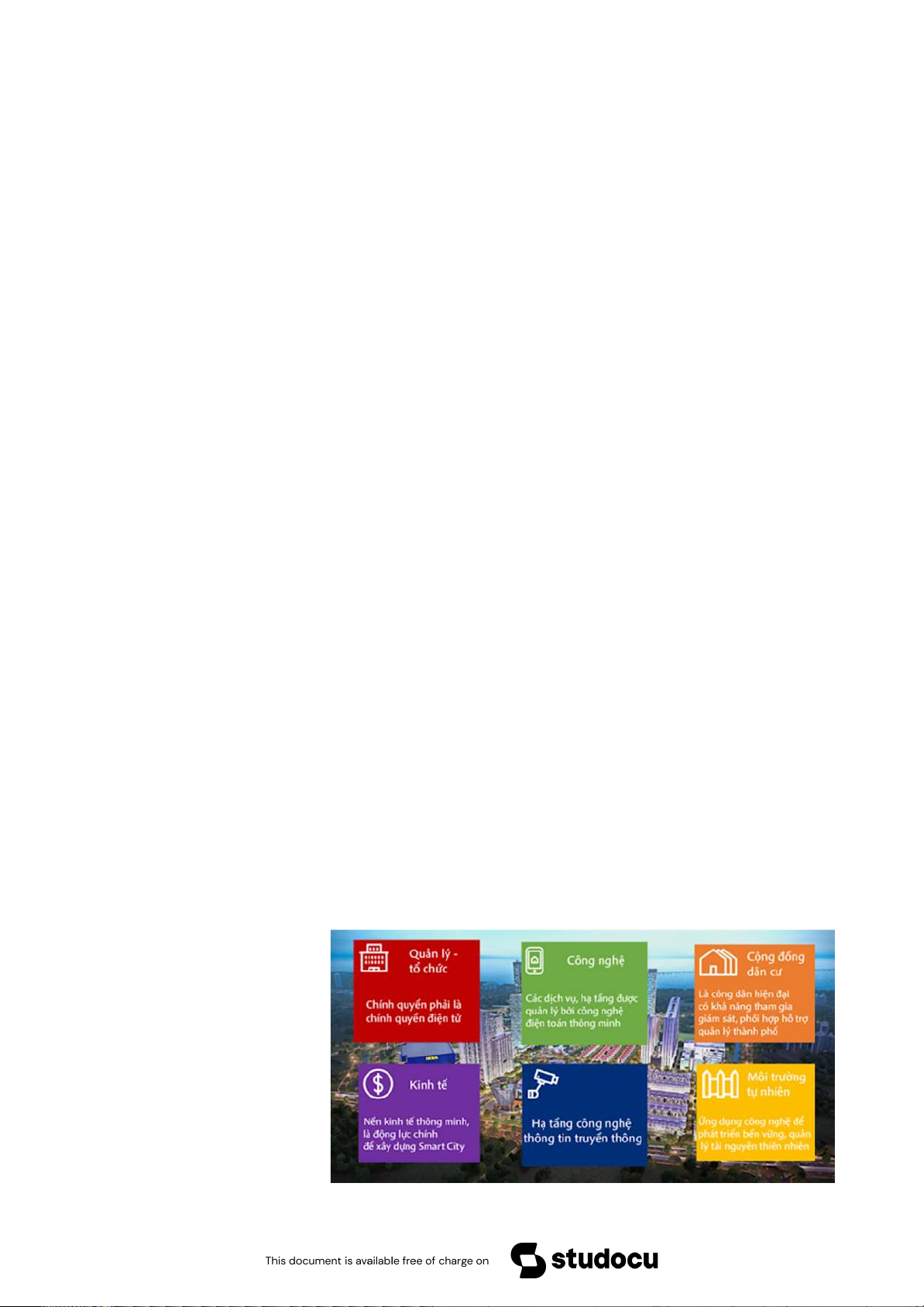 - Smarthome, smartcity (với 6 yếu tố như hình). - Cloud services. - Smart factory. - Blockchain.