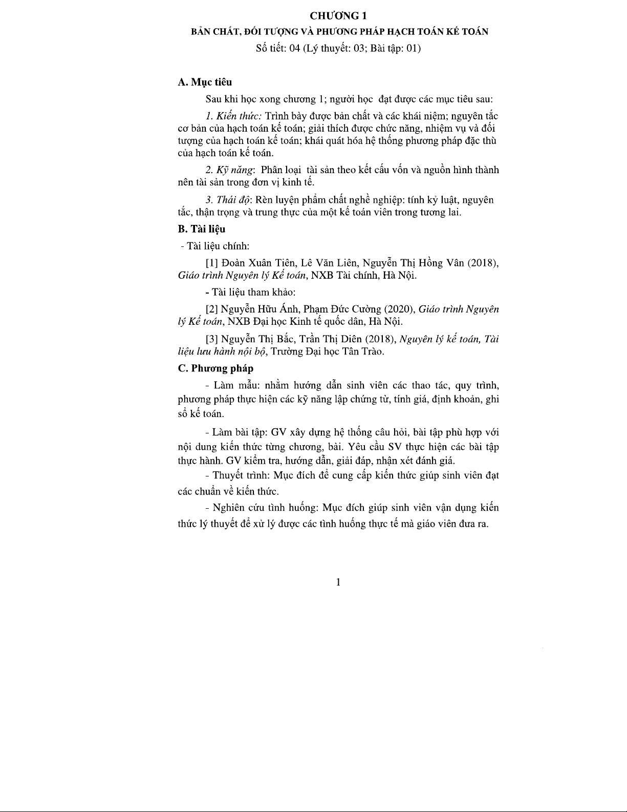 Giáo trình Nguyên lý Kế toán - Chương 1: Bản Chất và Phương Pháp Hạch Toán