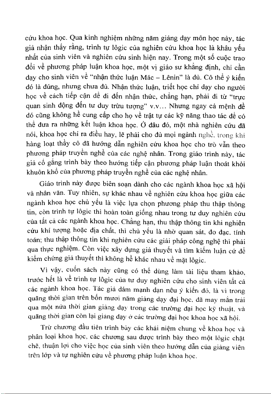 Trừ chương đâu tiên trình bày các khái niệm chung về khoa học và