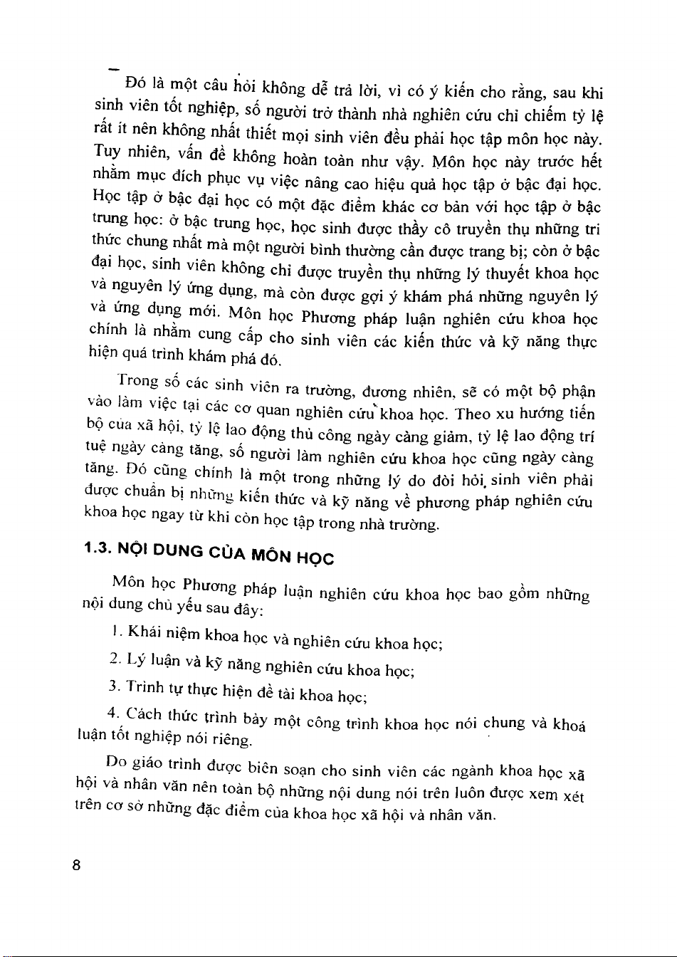 trên lớp và tự nghiên cứu về phương pháp luận khoa học.