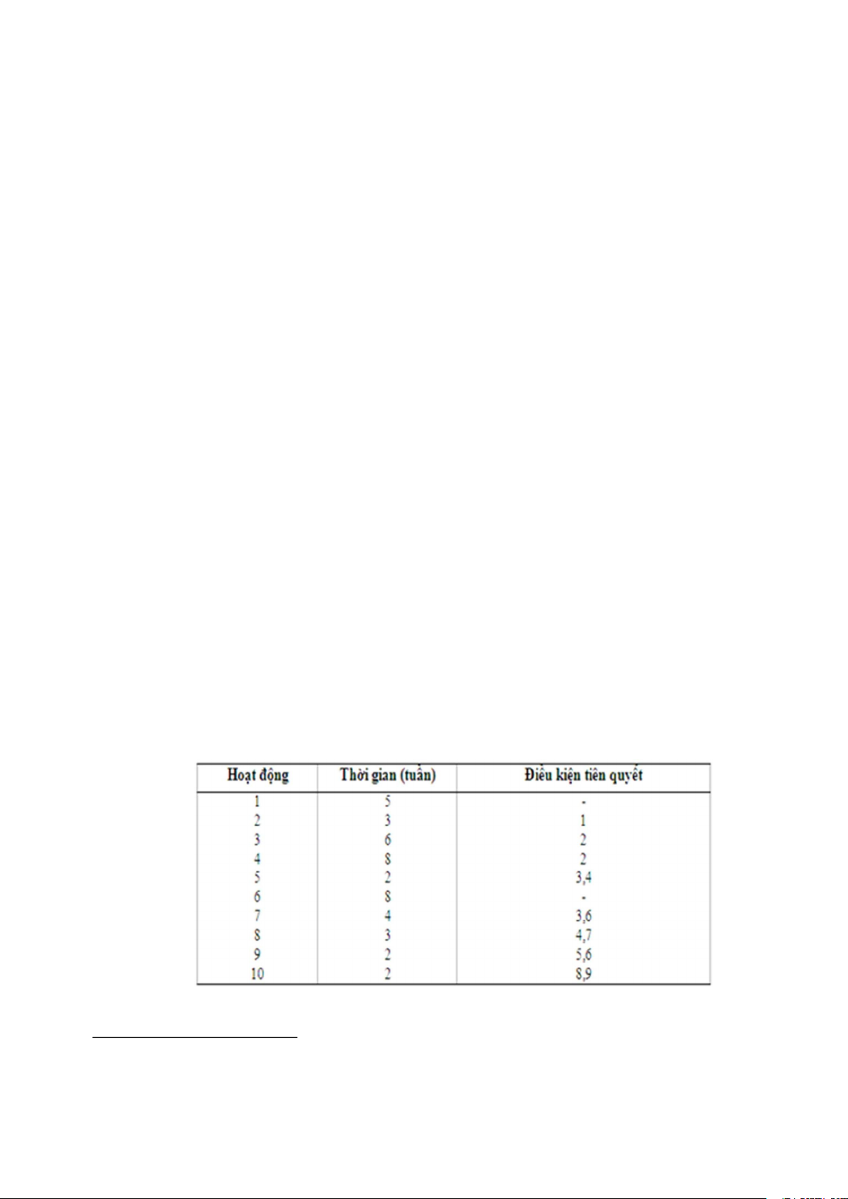 thể được gắn với một số các điều kiện tiên quyết. Bảng 2.1. liệt kê ví dụ về 10 hoạt động của một tiến