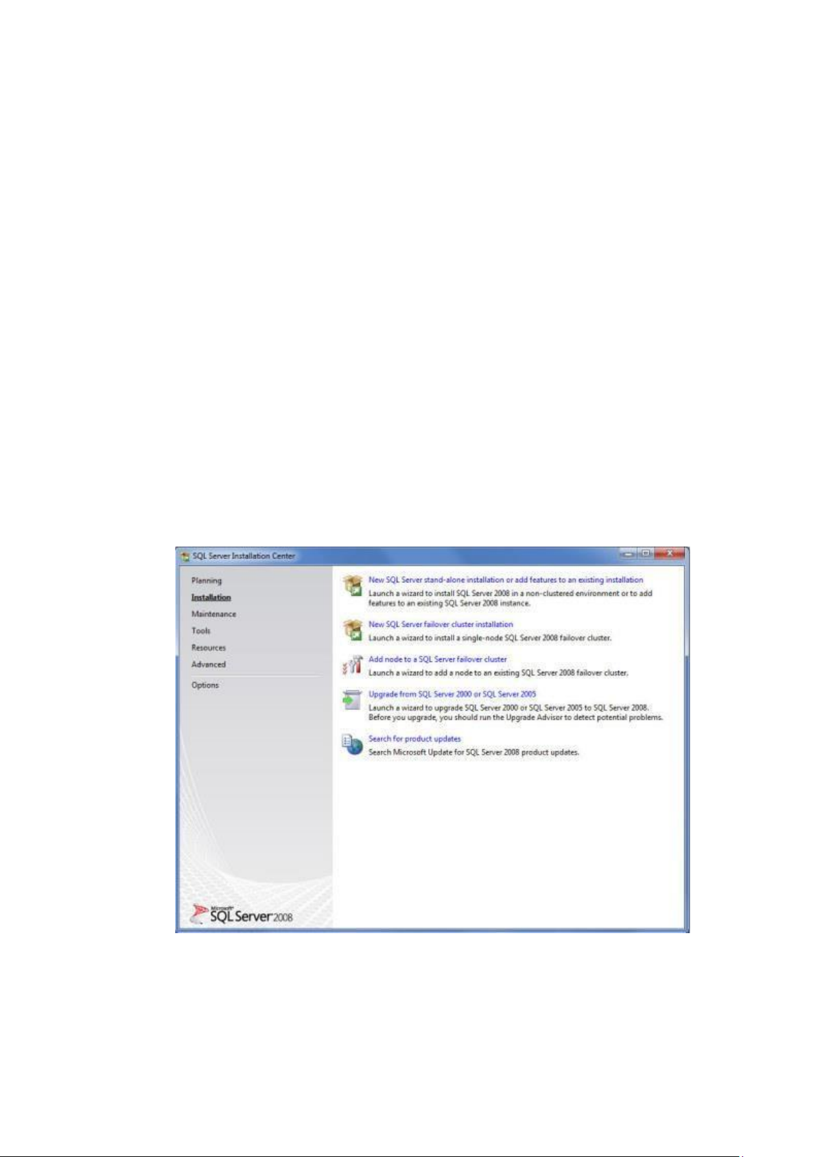 Bước 1: Tại màn hình cài ặt SQL Server 2008 bạn chọn mục Installation sau ó