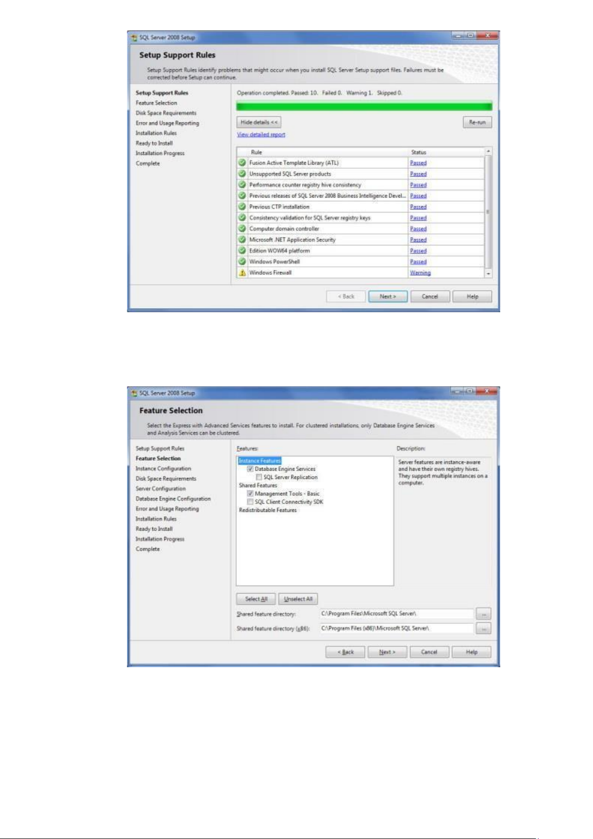 - Bước 6: tại màn hình "Setup Support Rules", nếu mỗi thứ suôn sẽ, thì nhấn nút  "Next" ể tiếp tục.  18            lOMoAR cPSD| 47206071