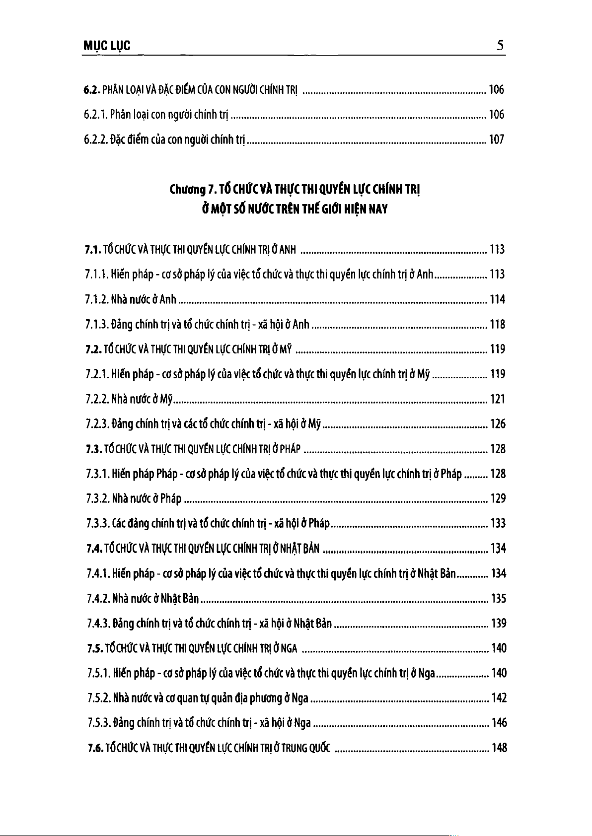 7 .5 . TỔCHỨC VÀ THỰC THI QUYẾN Lực CHÍNH TRỊ ở N G A .................................................................................. 140