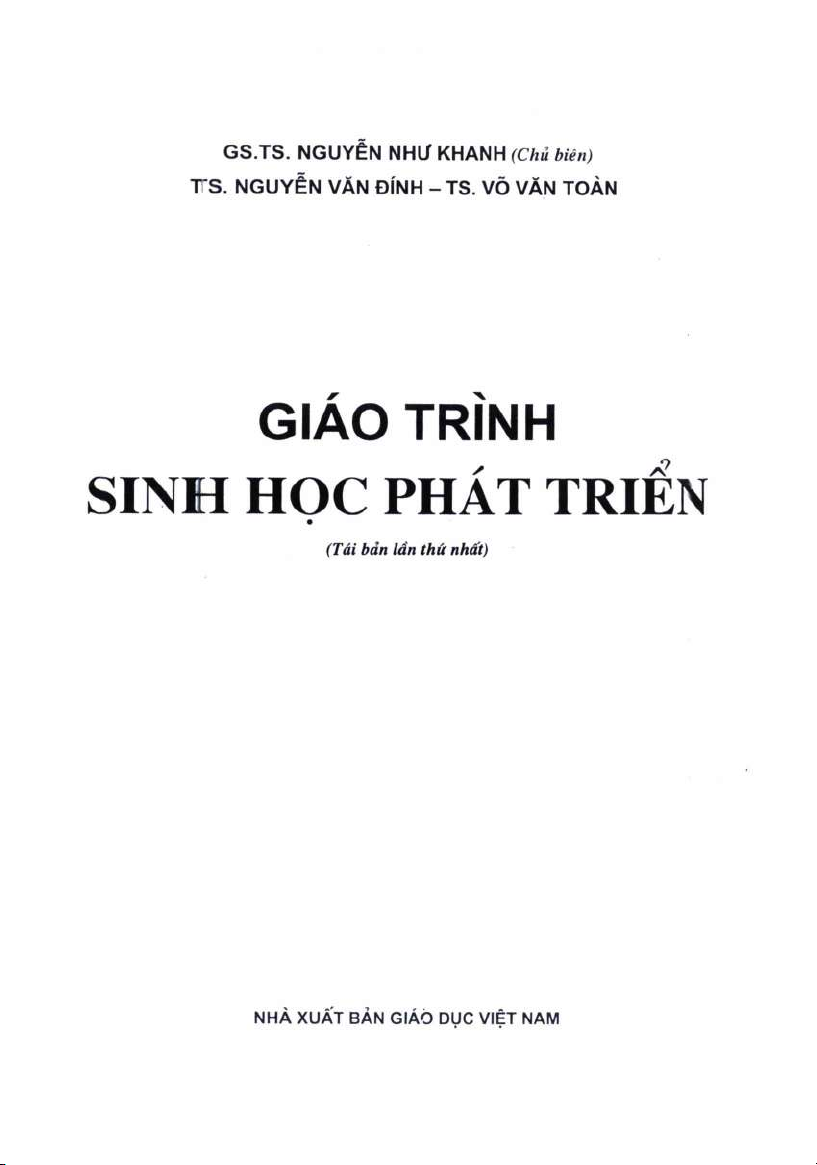 G iáo trình Sin h học p h á t triển là giáo trình đào tạo đại học và sau dại học ờ các trường