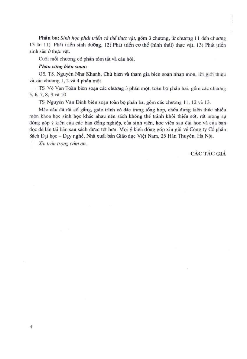 Phần ba: Sinli học p liá l triển cá th ề thực vật, gồm 3 chương, từ chương 11 đến chương