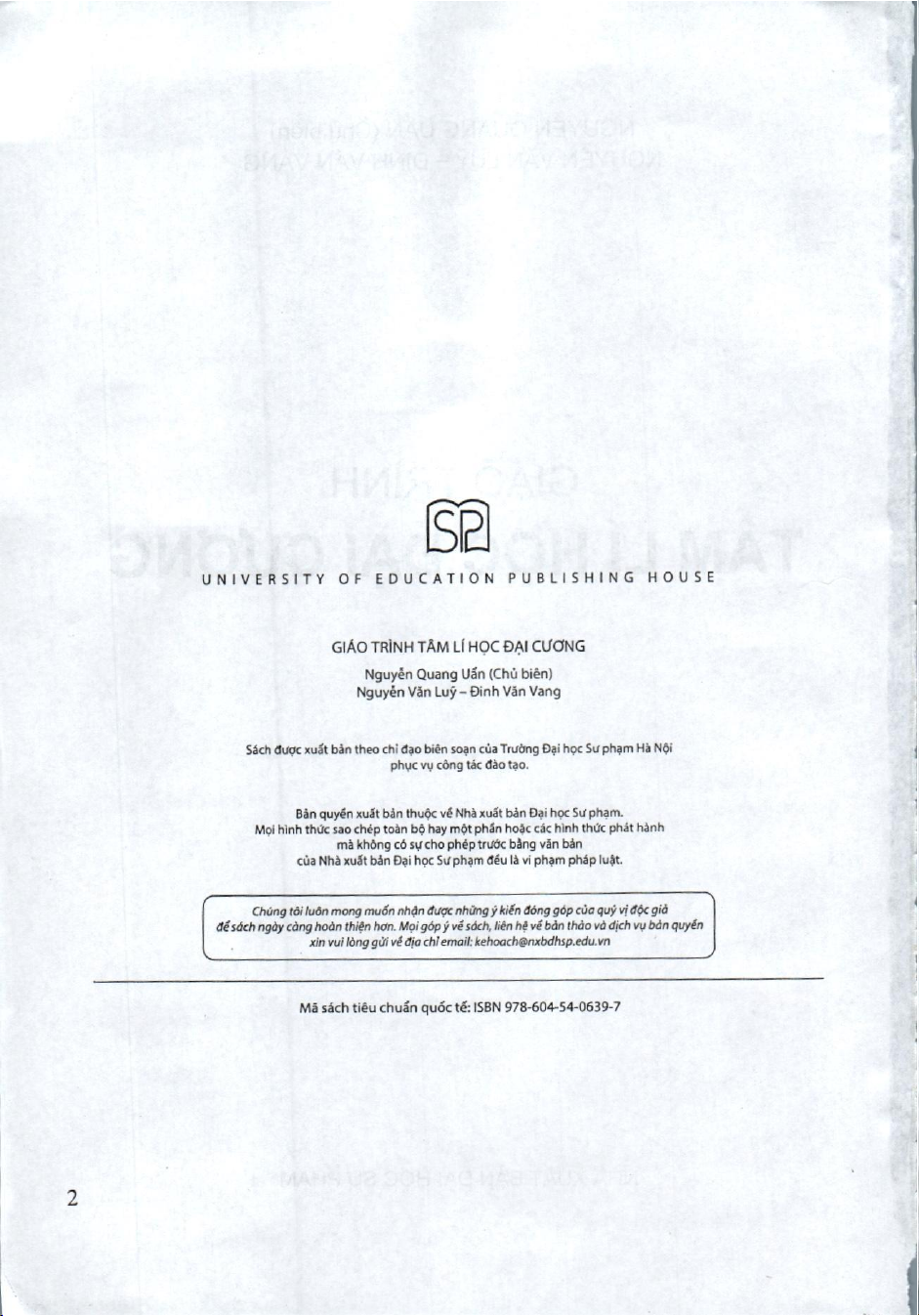 GIÁO TRÌNH TÂM LÍ HỌC ĐẠI CƯƠNG - Nguyễn Xuân Thức