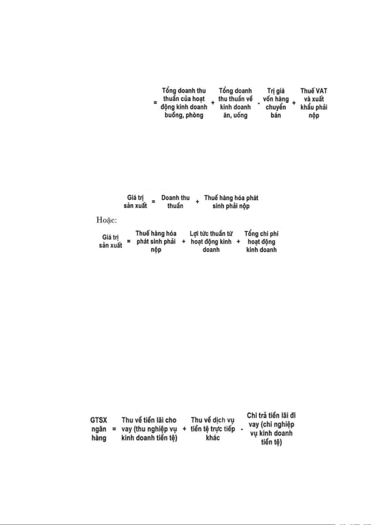 thuê buồng, phòng và hoạt động kinh doanh ăn uống trong một thời kỳ nhất định. Tính bằng cách: Giá trị sản xuất