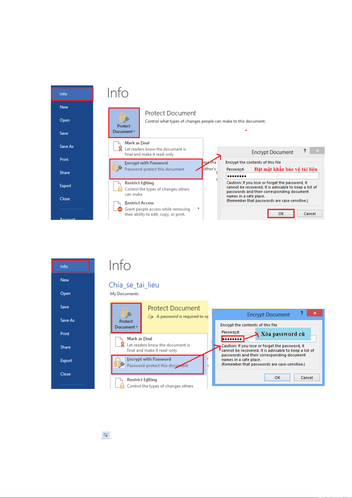 sẻ cũng như không muốn bị người khác xem, bạn có thể thiết lập mật khẩu cho tài liệu