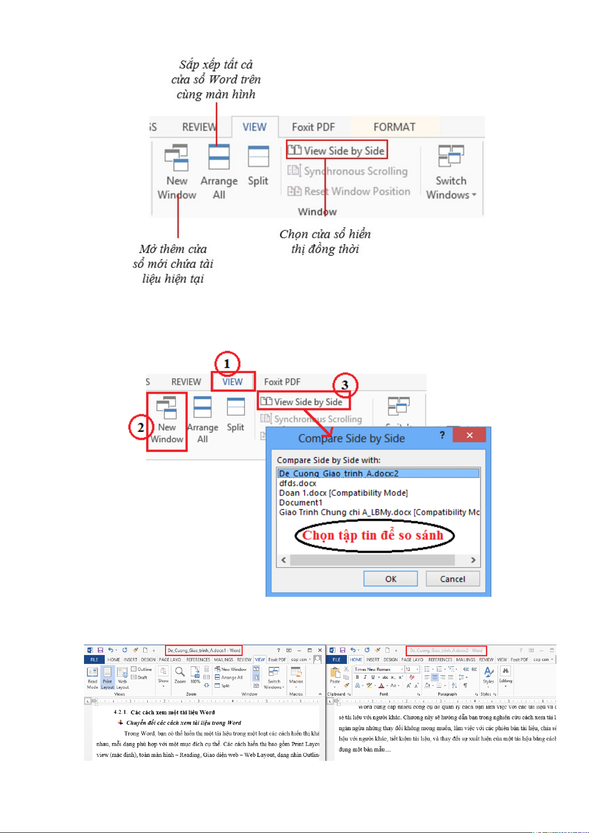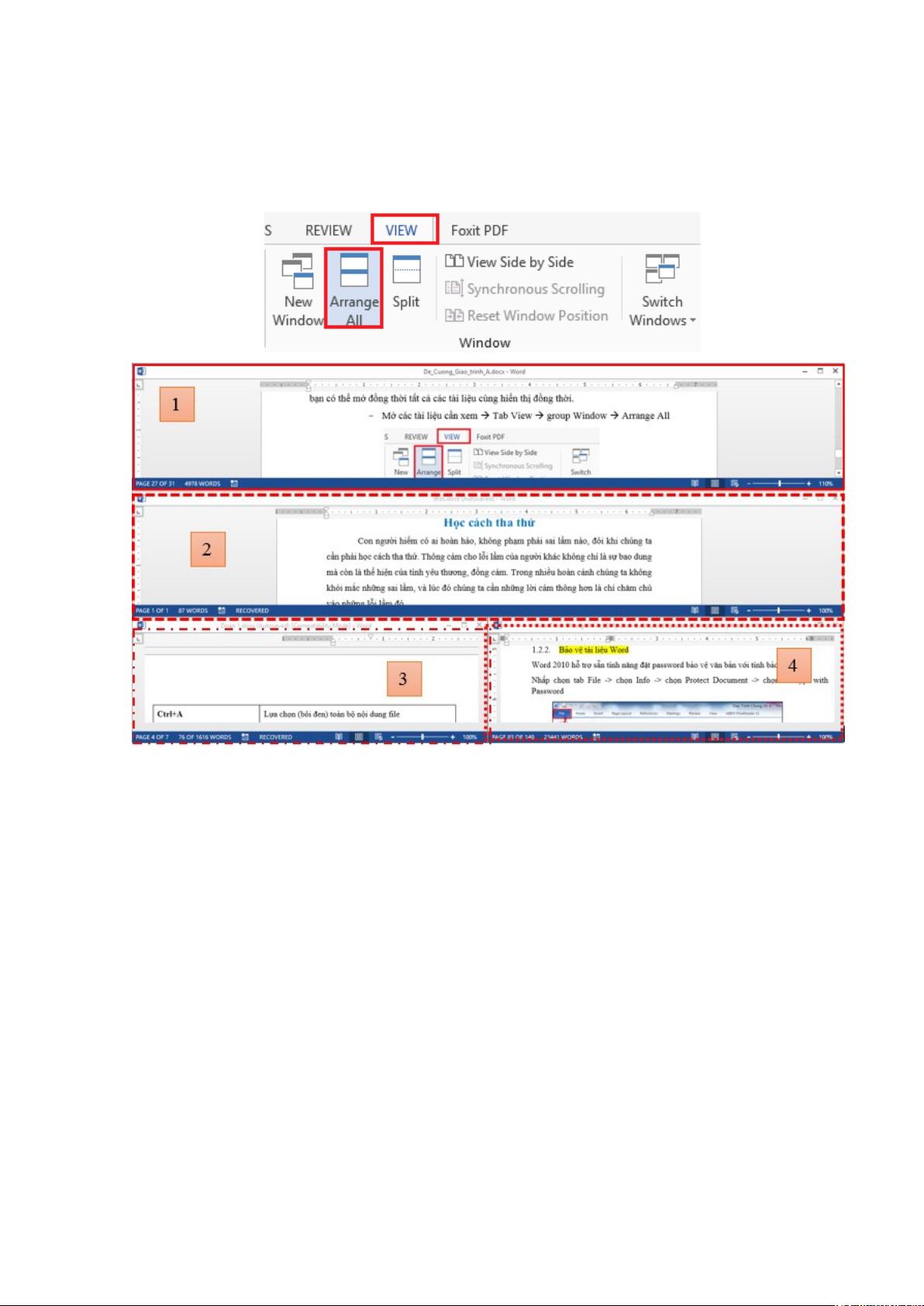 - Mở các tài liệu cần xem Tab View group Window Arrange All