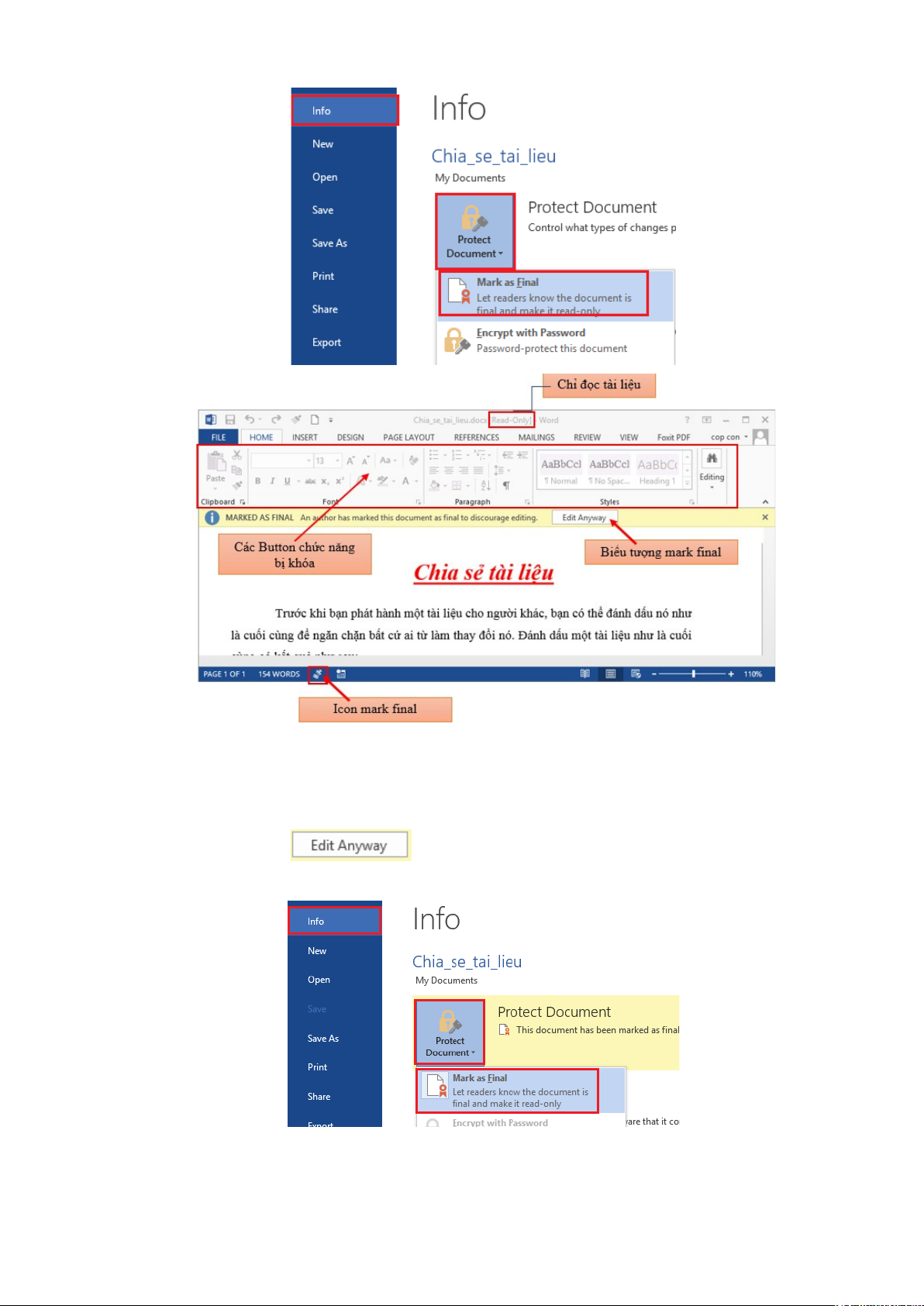 hiện thao tác này, bạn chọn Tab File Info Protect Document Mark as Final :