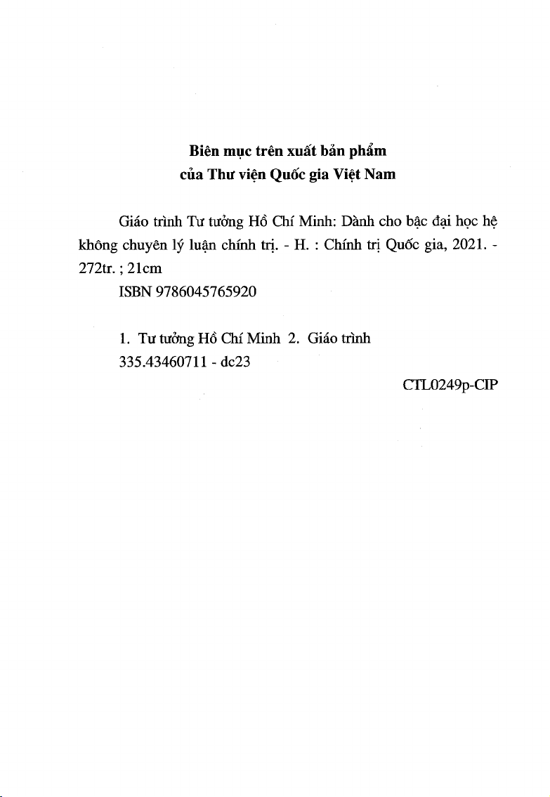 1. Tư tưởng Hồ Chí M inh 2. Giáo trình 335.43460711 - dc23 CTL0249p-CIP
