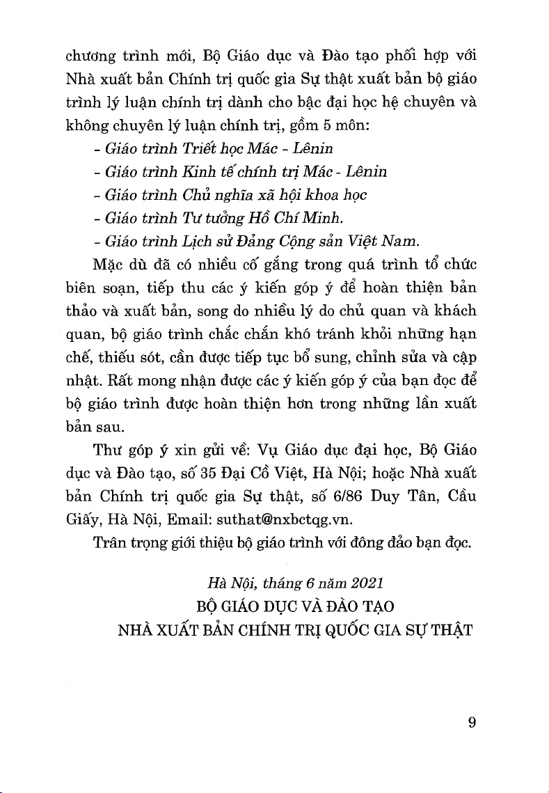 (Dành cho bậc đại học hệ không chuyên lý luận chính trị)
