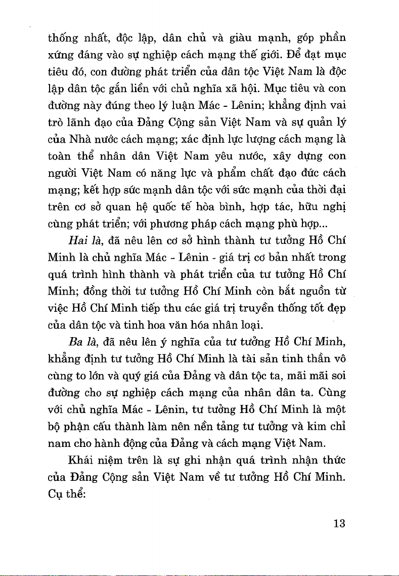 tưởng Hồ Chí Minh là toàn bộ những quan điểm của Hồ