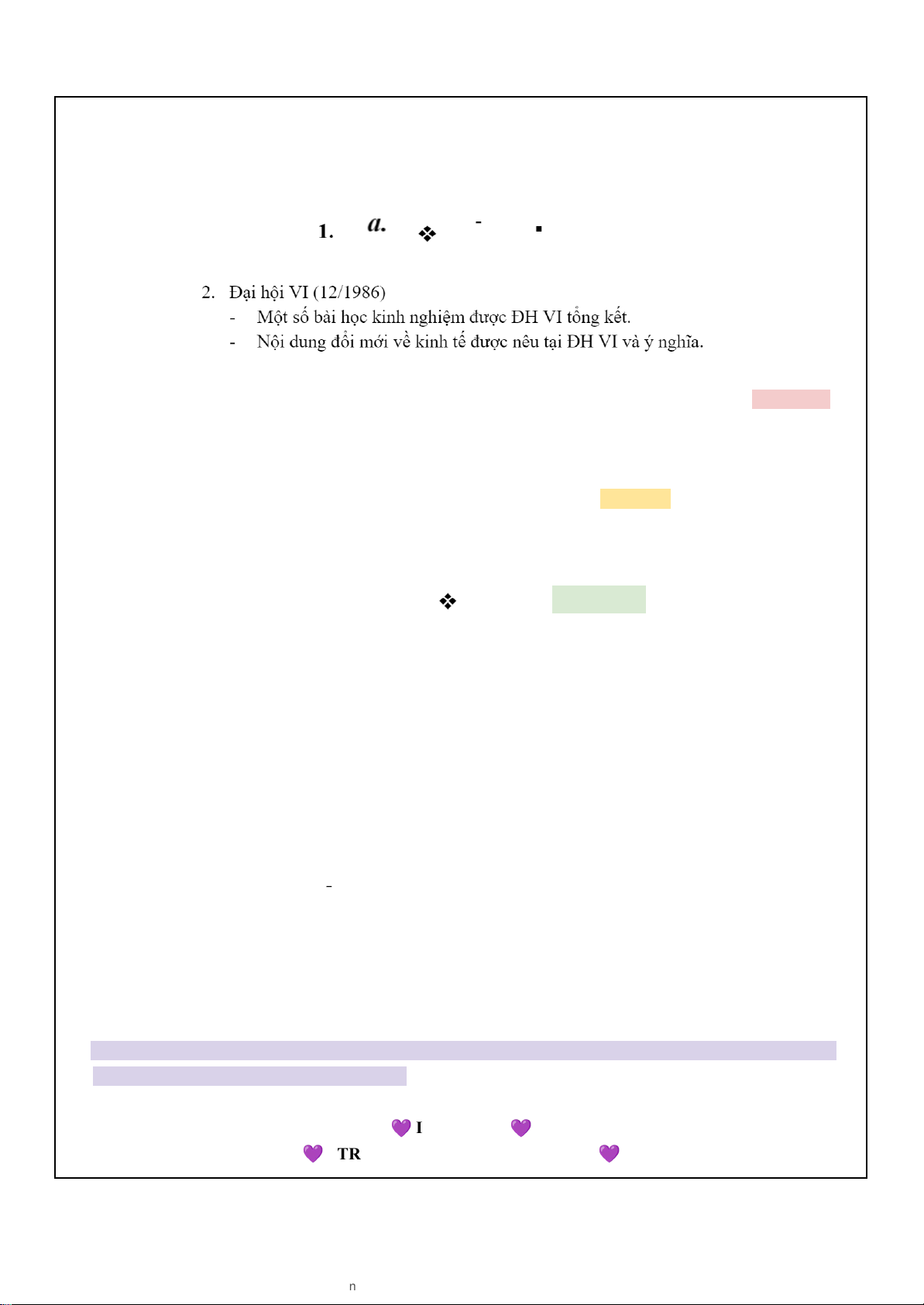 - Tên chủ đề/nội dung gốc: “2. Đại hội VI (12/1986)” được đánh số la mã: I, II,. . và highlight hồng pastel