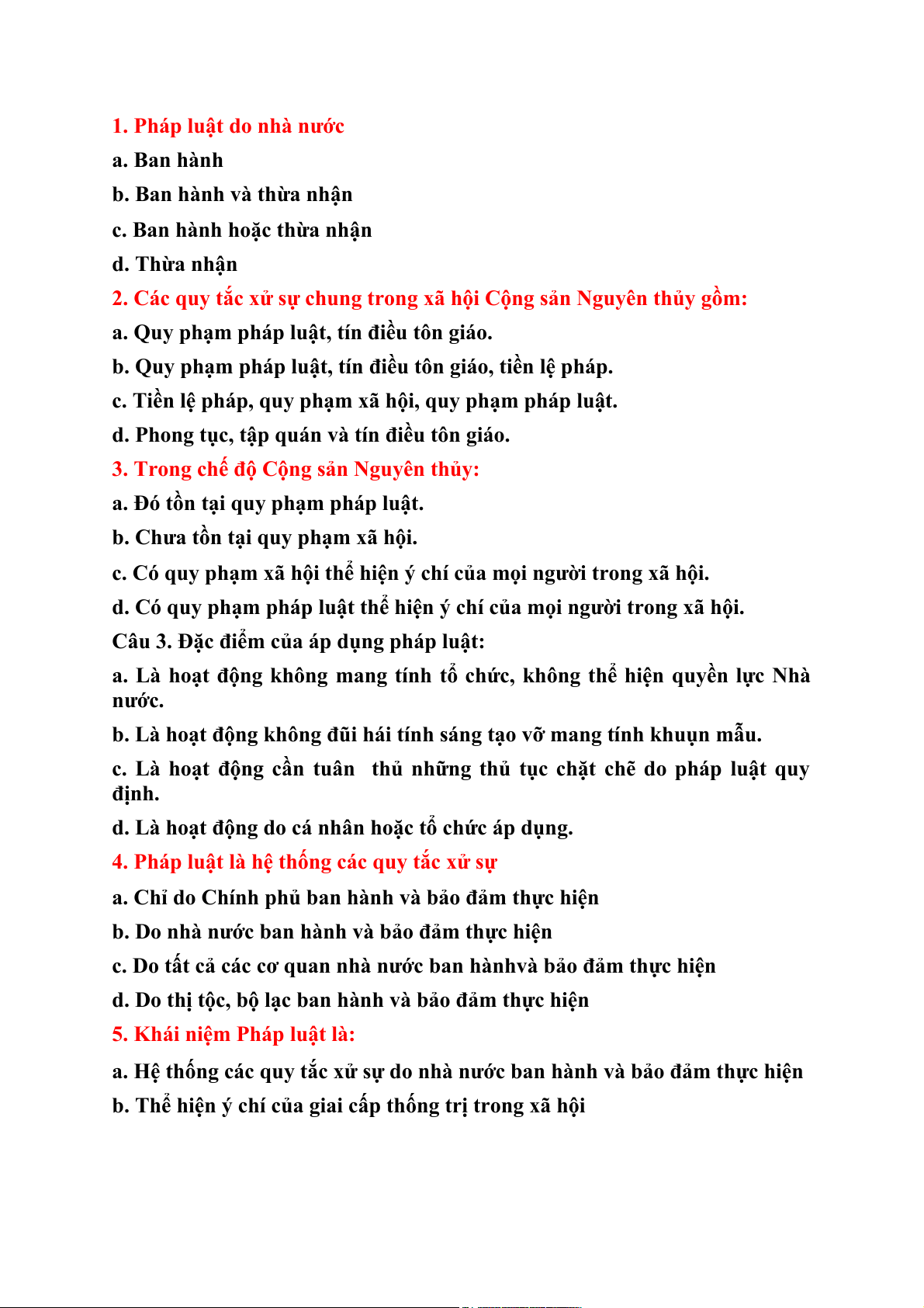 1. Pháp luật do nhà nước a. Ban hành b. Ban hành và thừa nhận