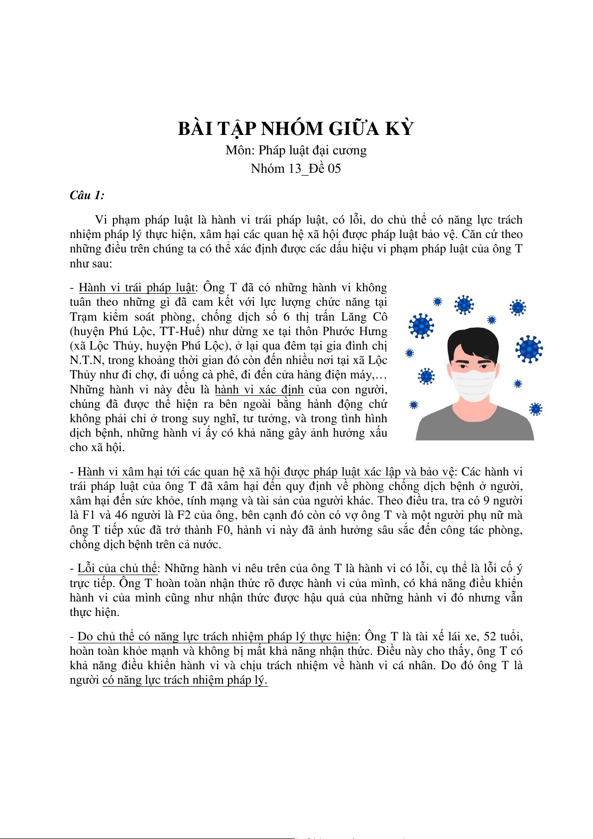 Môn: Pháp luật đại cương Nhóm 13_Đề 05 Câu 1: