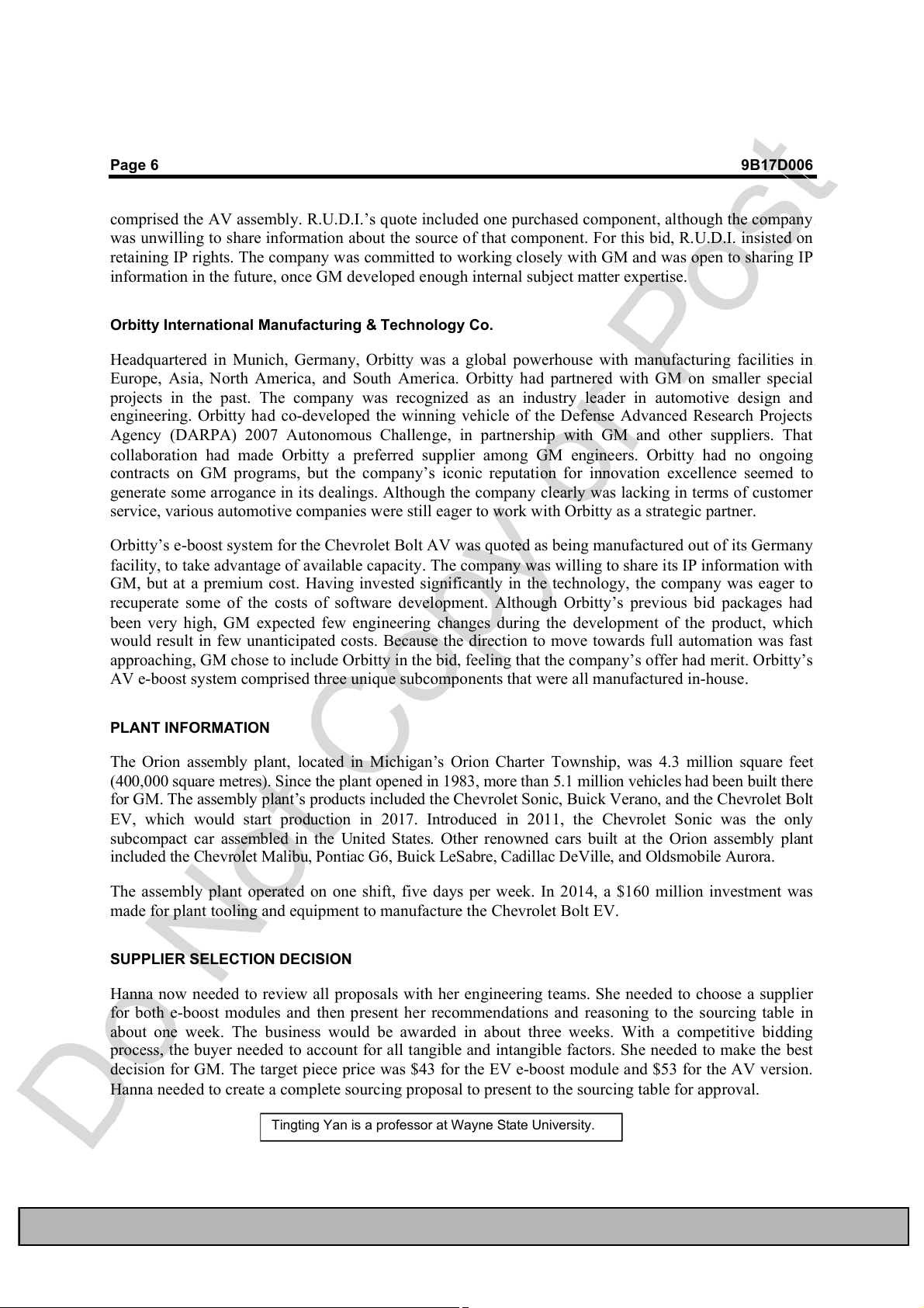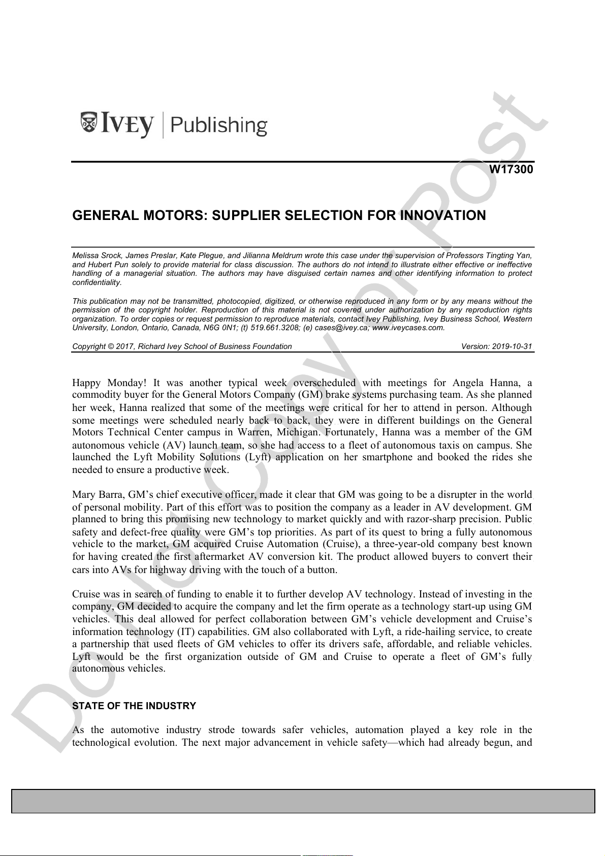 GENERAL MOTORS: SUPPLIER SELECTION FOR INNOVATION