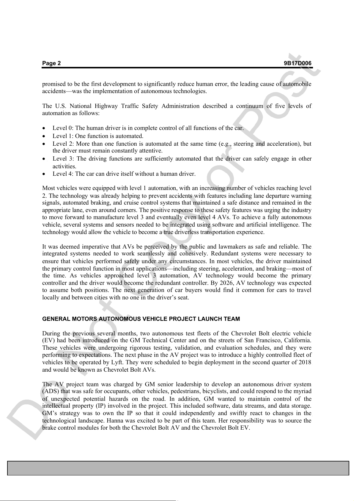 of unexpected potential hazards on the road. In addition, GM wanted to maintain control of the