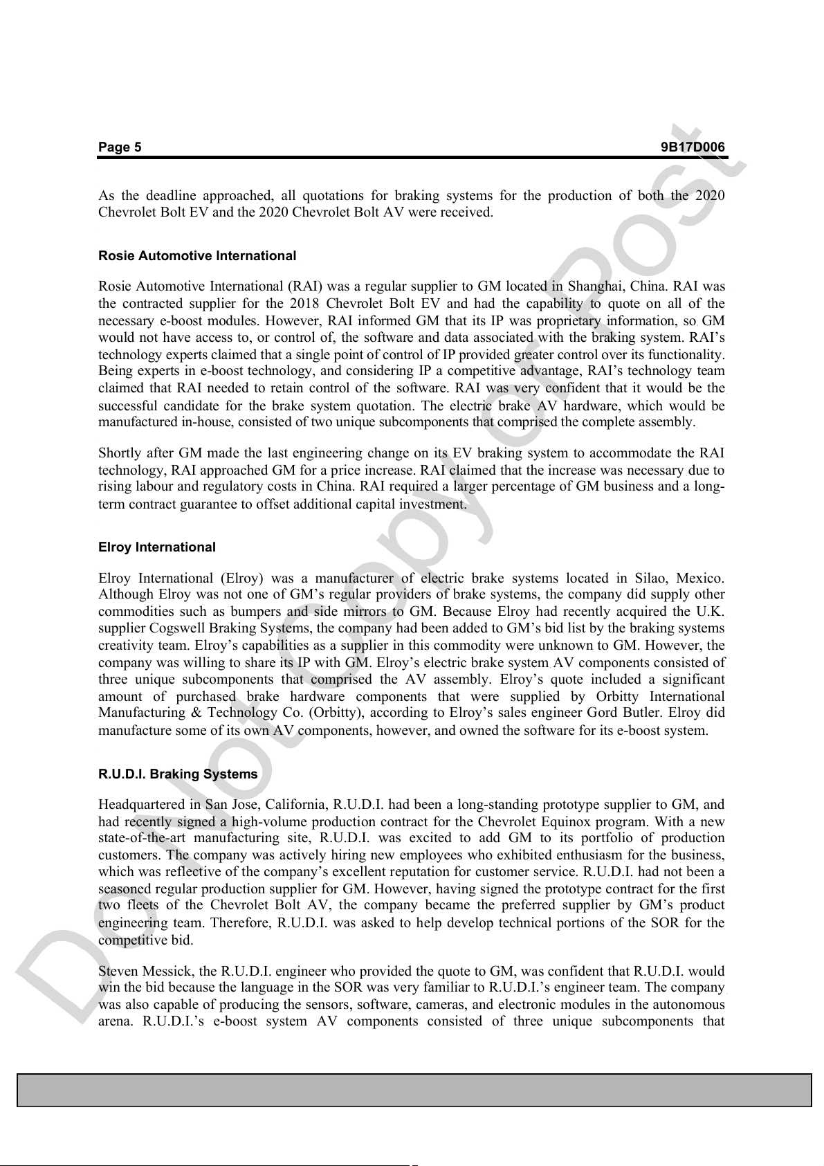 company was willing to share its IP with GM. Elroy’s electric brake system AV components consisted of