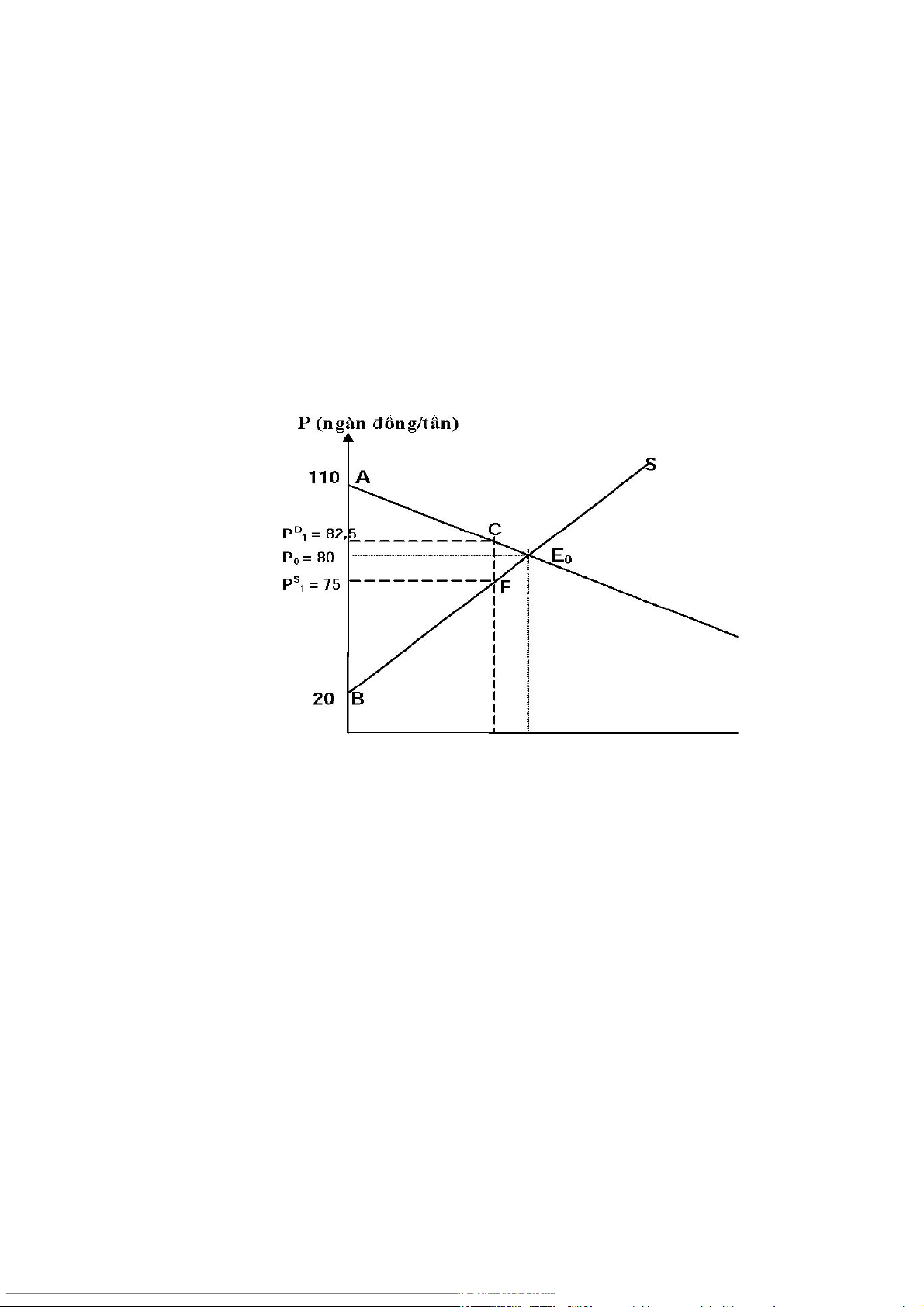 (S) : PS = QS + 20 (Đơn vị tính của QD, QS là ngàn tấn, đơn vị tính của PD, PS là ngàn đồng/tấn)