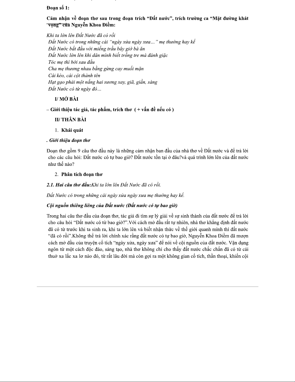 Gợi Ý Phân Tích Đoạn Trích "Đất Nước" - Nguyễn Khoa Điềm