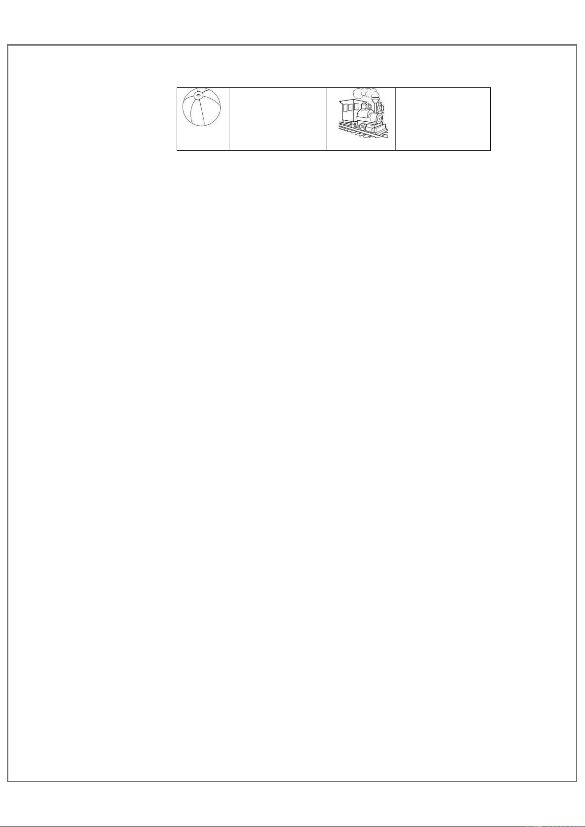 Exercise 9 : Circle the odd one out a. apple b. pizza c. orange d. peach a. doll b. ball c. teddy d. book a. pen b. car c. pencil d. ruler a. green b. kite c. pink d. red a. pink b. green c. blue d. circle a. I b. My c. He d. She a. ten b. 昀椀 ve c. three d. black a. Hi b. Hello c. Hey d. Good bye