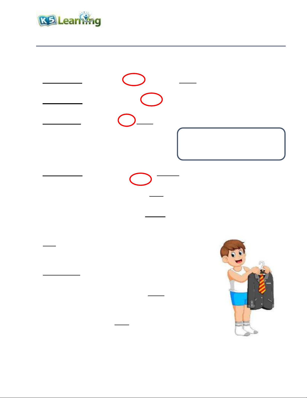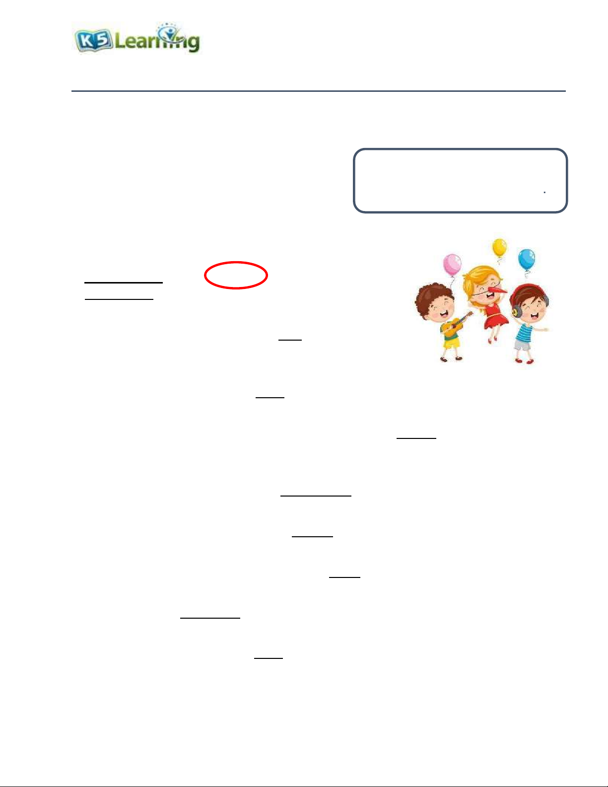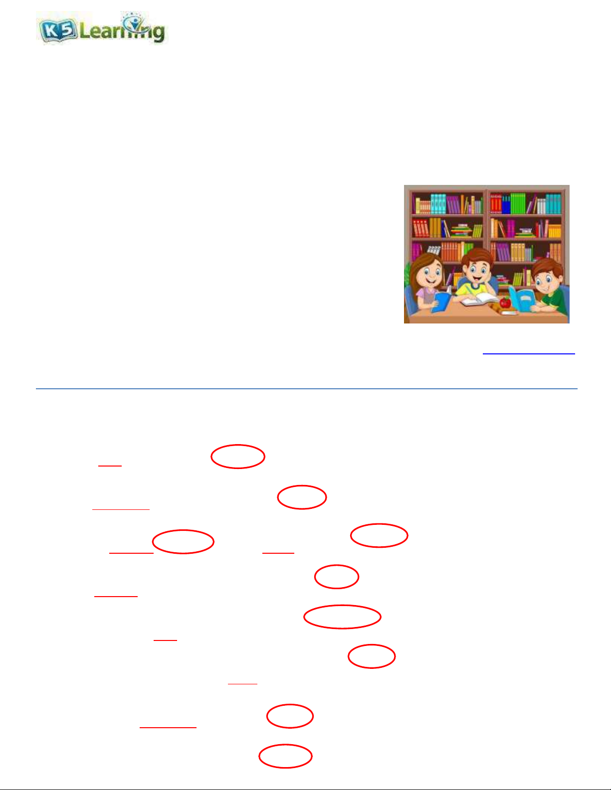 12. I instantly knew that I would love my new book. and M www.k5learning.com Answers 1. We ate the popcorn quietly. 2.