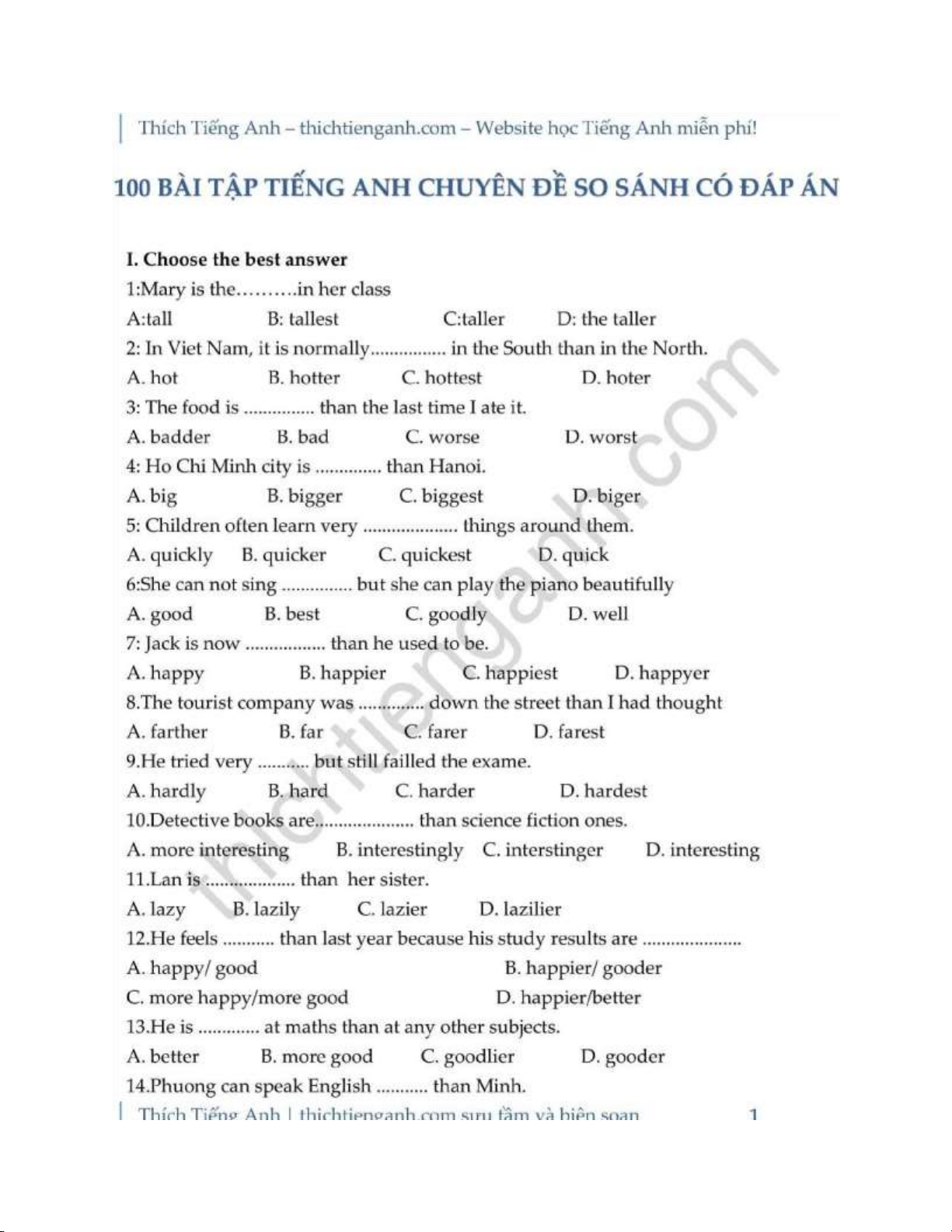 Comparative ( so sánh hơn )- Superlative ( so sánh nhất ) I/So sánh bằng