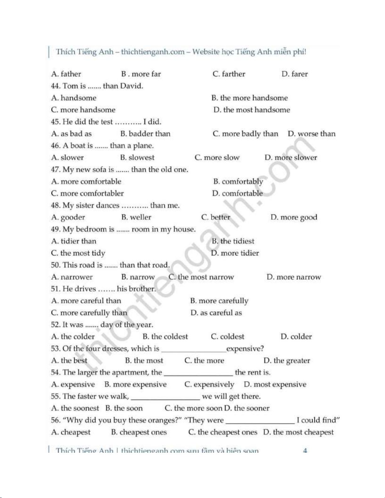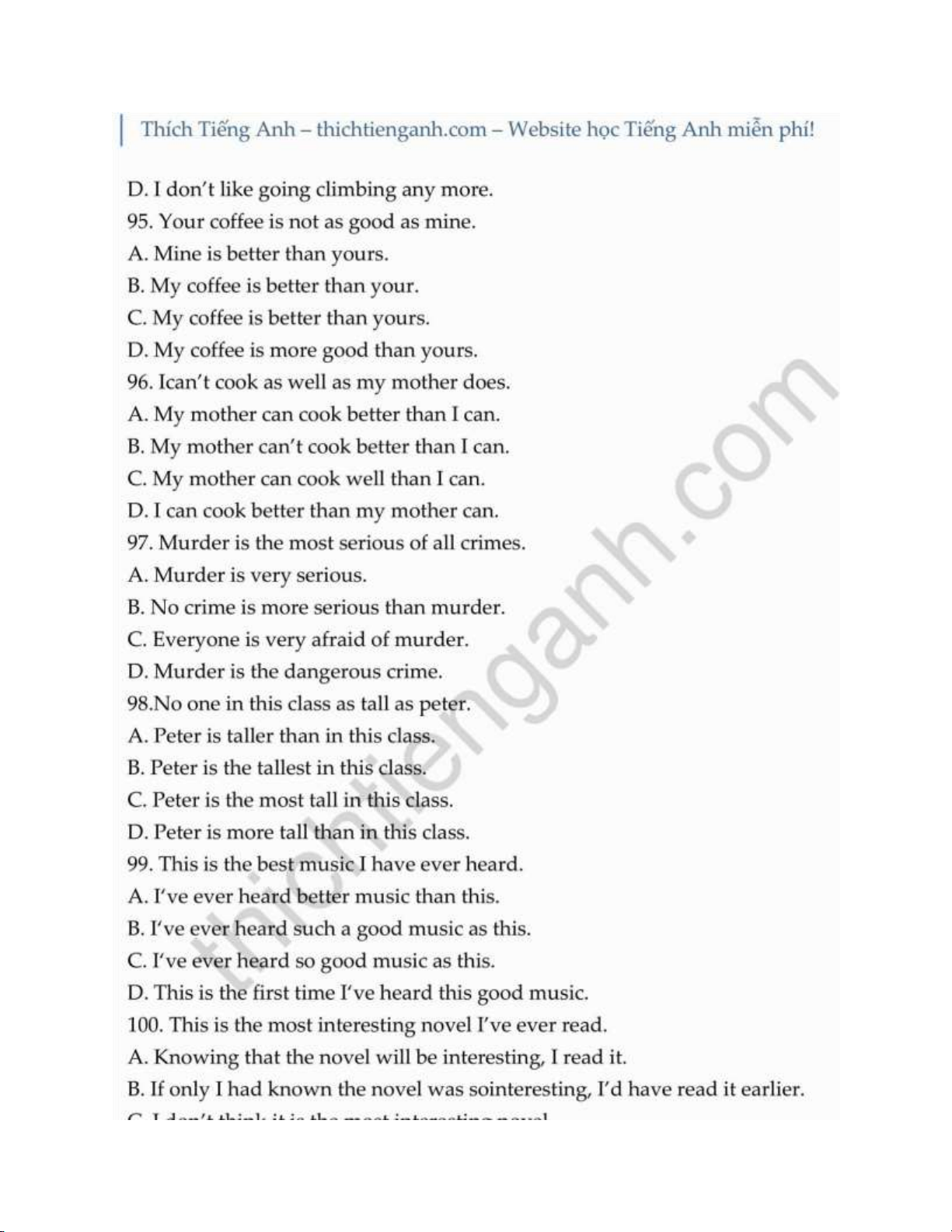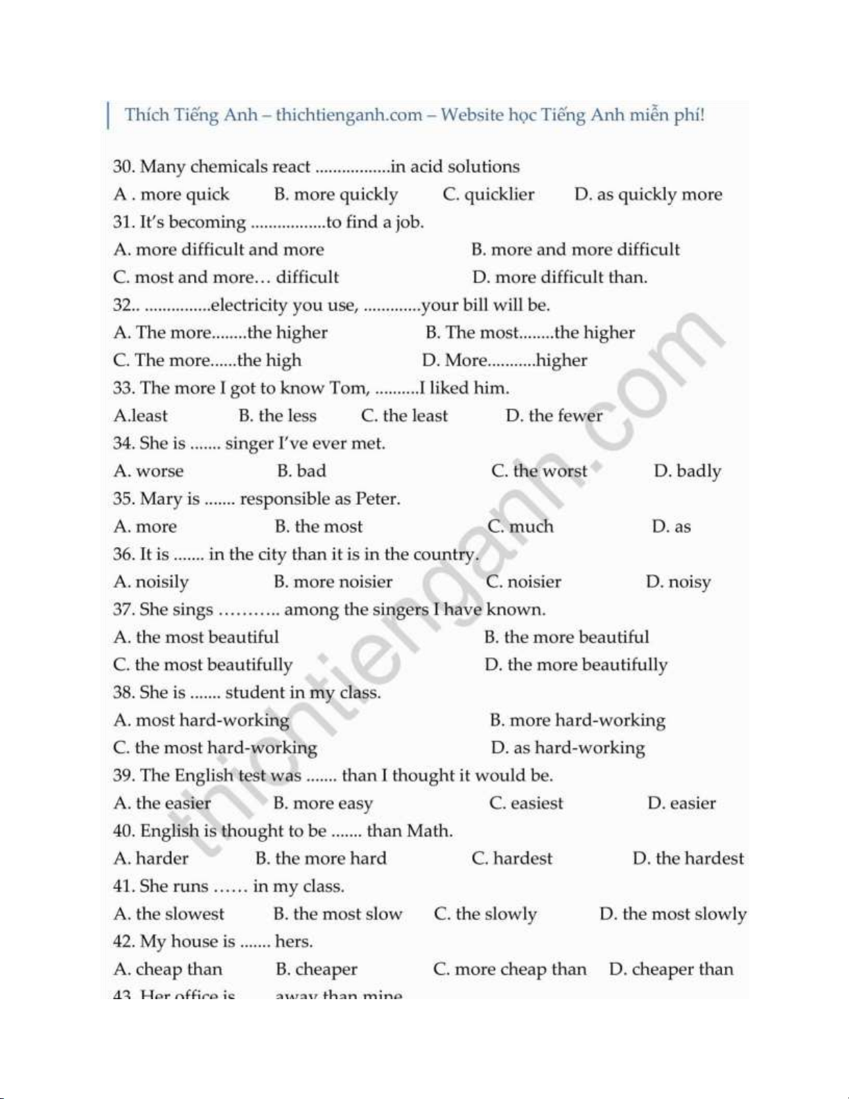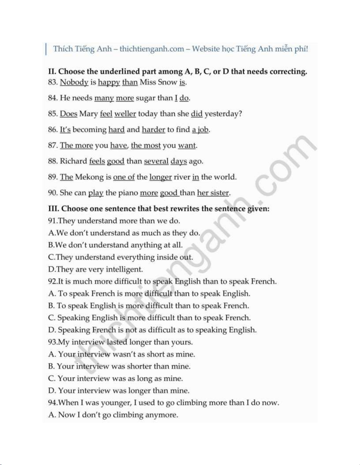 a. For more b. Mored. The most so sánh c. The nhất 15. I would have paid for more my car if the salesman had
