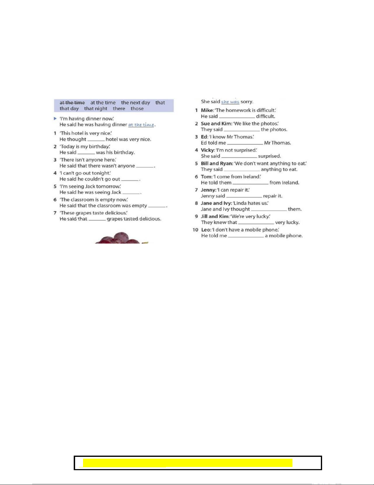 Ex 5: What did they say? Write the direct speech 23:48, 09/01/2026