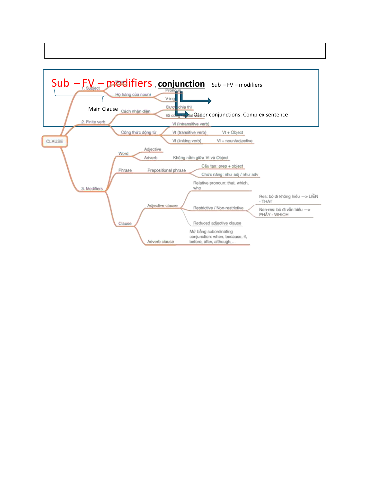 Quan trọng nhất của clause (khng thể thiếu): Subject + FV