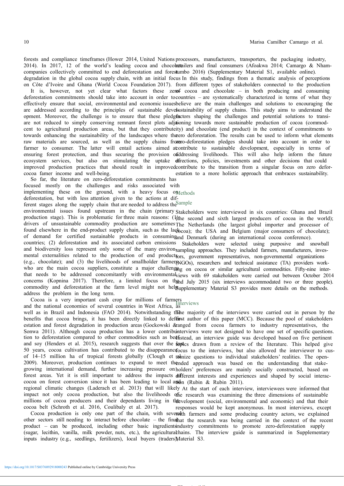 on Côte d’Ivoire and Ghana (World Cocoa Foundation 2017). from different types of stakeholders connected to the production