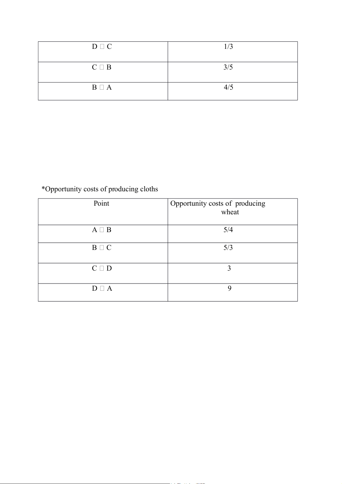 *Opportunity costs of producing cloths Point Opportunity costs of producing wheat A B 5/4 B C 5/3 C D 3 D A 9
