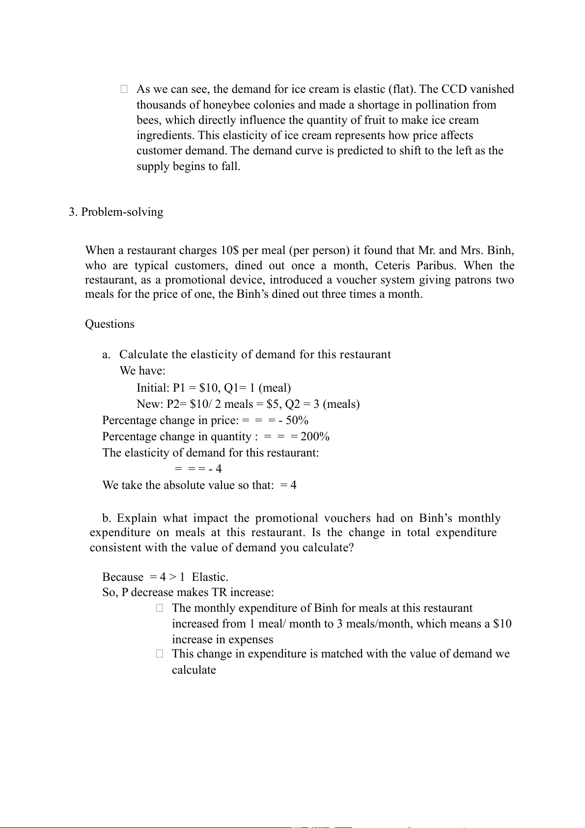 b. Explain what impact the promotional vouchers had on Binh’s monthly