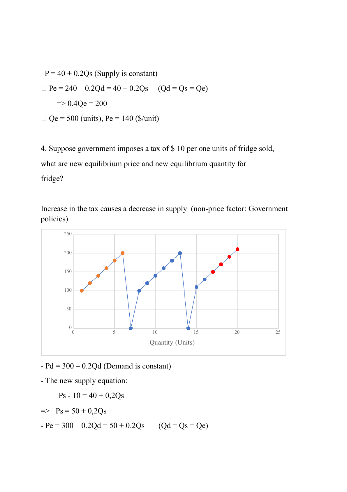 4. Suppose government imposes a tax of $ 10 per one units of fridge sold,