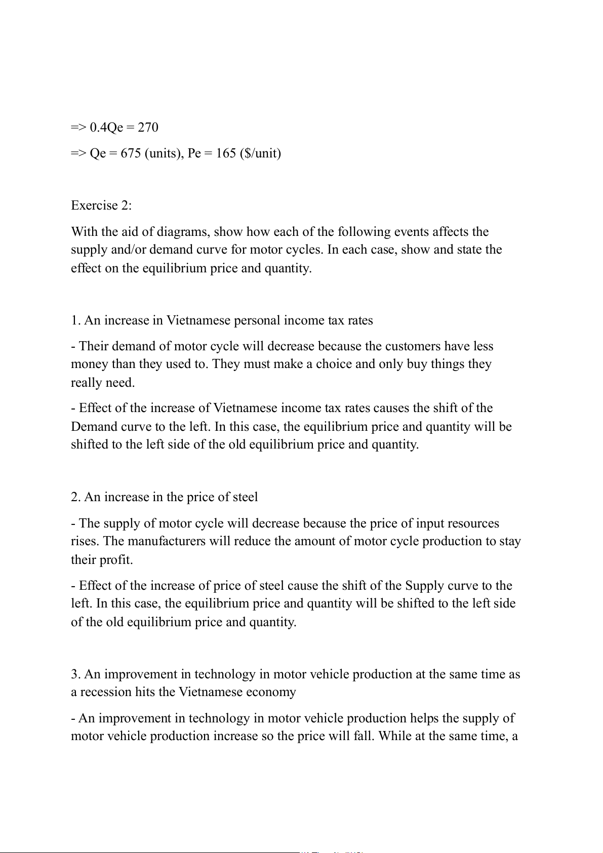 => Qe = 675 (units), Pe = 165 ($/unit) Exercise 2: