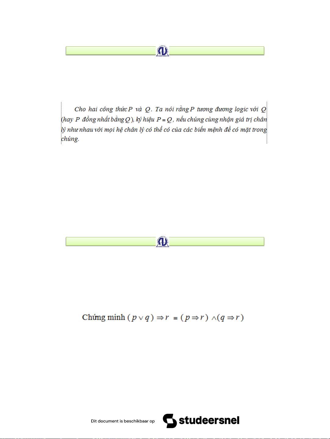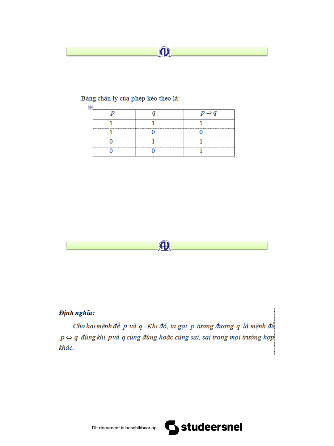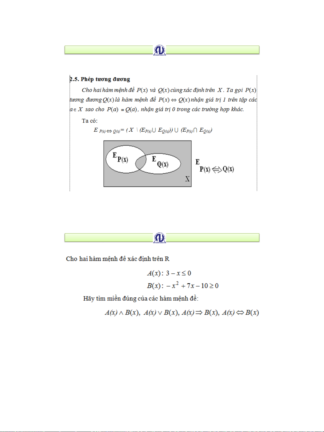 1.2. Sự tương đương giữa các mệnh đề • 1.2.1. Định nghĩa • 1.2.2. Tính chất • 1..2.3. Dạng chuẩn tắc •