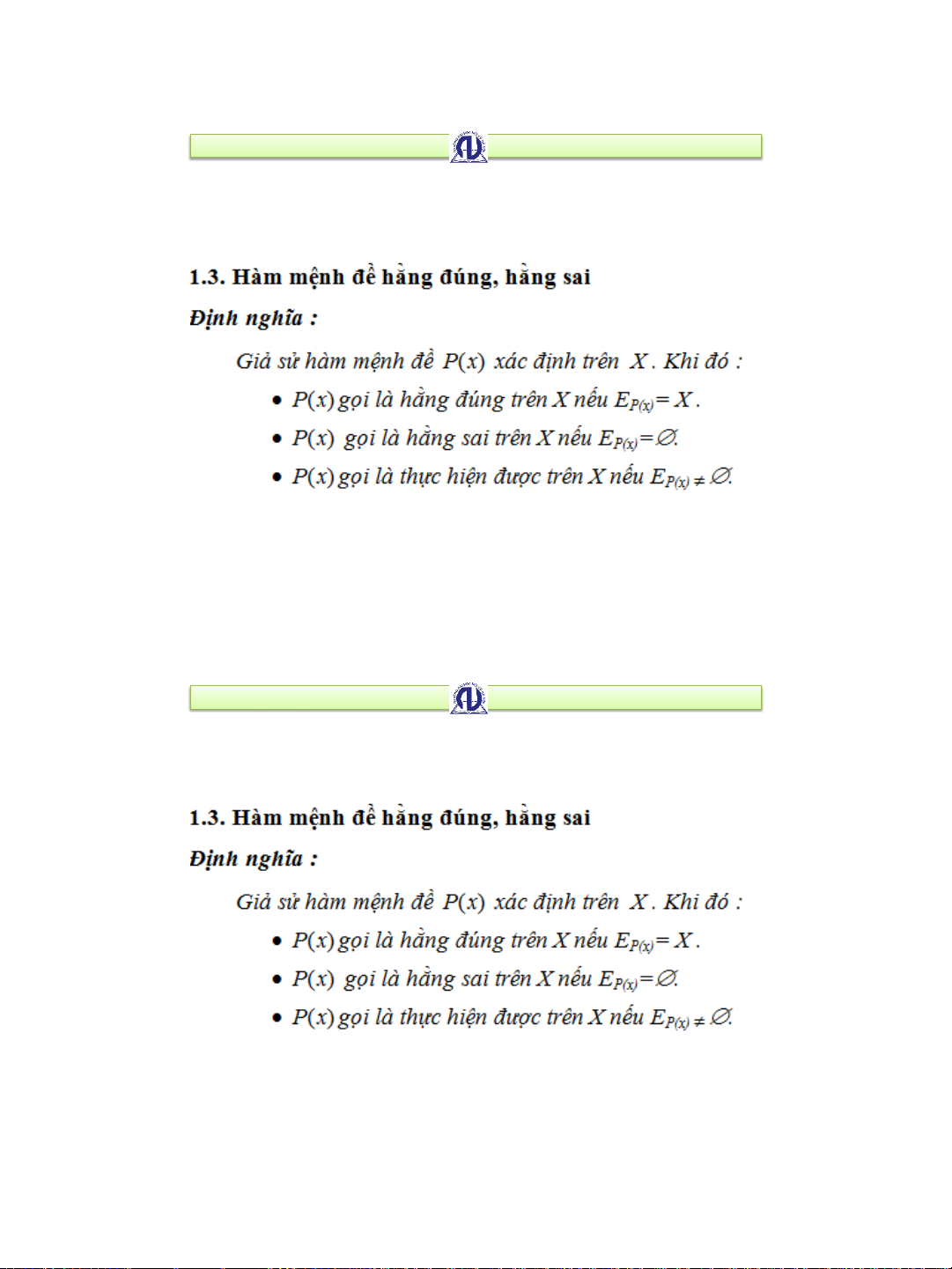 1.3.2. Phép toán trên hàm mệnh đề • 1.3.3. Lượng từ •